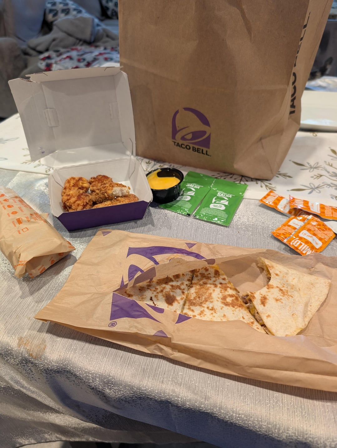 Deliciousnessby TNG1701D-eck10 taco bell 2 Comments Fuzzy_Welcome8348 3 weeks ago Love tacobellβs quesadillas! This is basically almost my exact order Gbh11108 3 weeks ago I think your Chihuahua is possessed.Write A CommentYou must be logged in to post a comment.