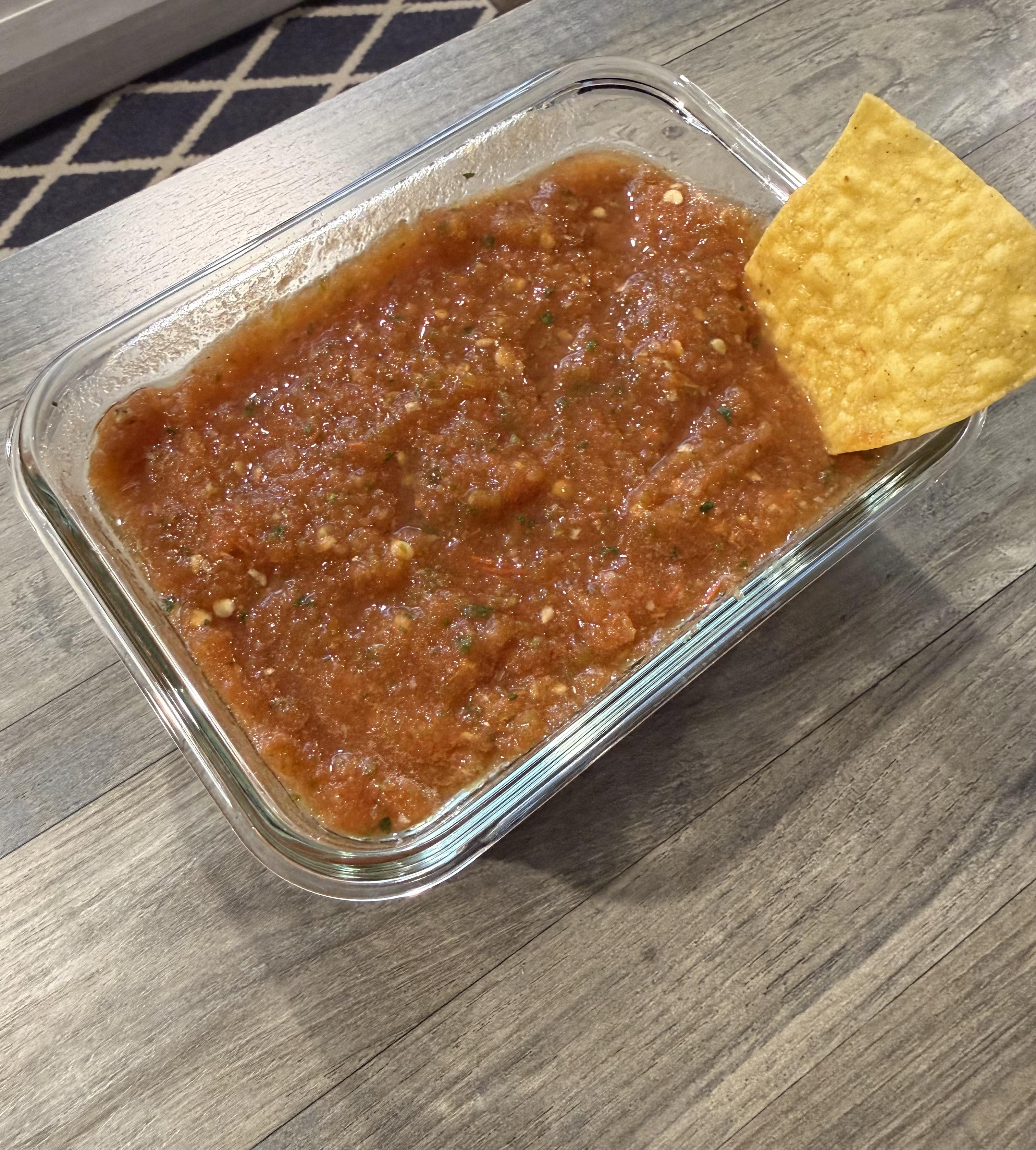 First time making salsa! It turned out super good so I wanted to share. Ingredients I used was, 2 jalapeños, 2 habaneros, 4 roma tomatoes, 1 whole peeled tomato out of can (with juice), 1 garlic clove, onion, fresh cilantro, dried oregano and salt.