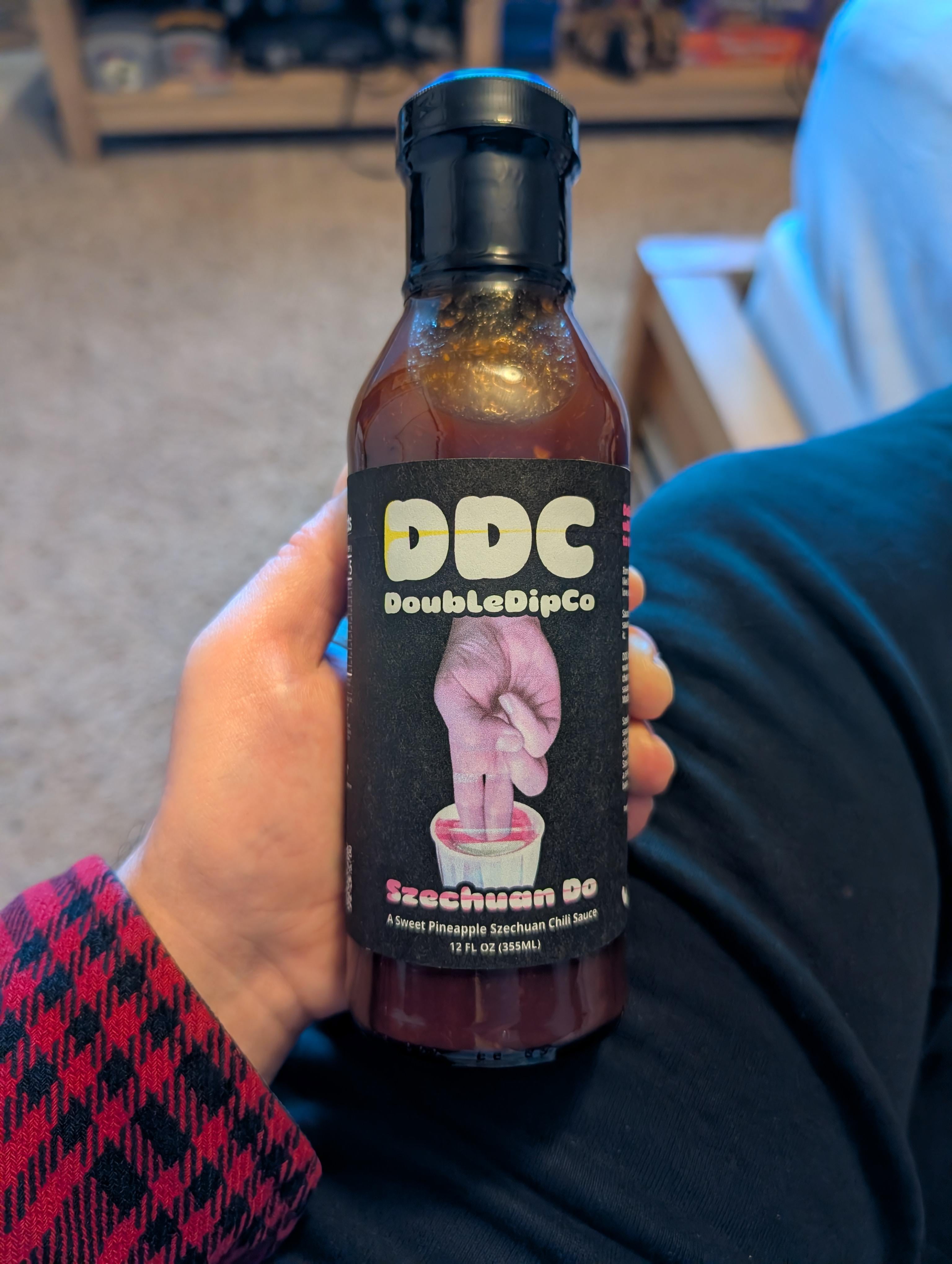 The mock up label is for my dip specific brand. This one is a sweet pineapple Sichuan chili sauce. It answers the question, what if McDonald's Szechuan Sauce had actually Sichuan peppercorn in it with a little bit of spice.