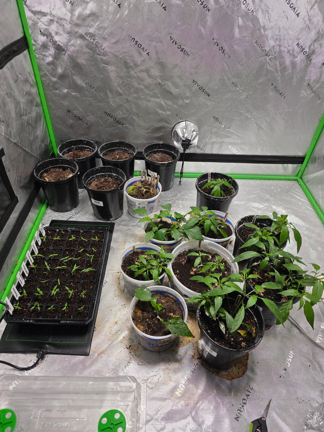 Started noticing chunks out of some of my clone leaves. Can't see any bugs present and I regularly spread diatomaceous earth every week or so. Is this a nutrition issue or something else? Any advice or help is greatly appreciated. BTW these are clones of my pepper plants from last year if that helps. I just want to make sure whatever it is wont spread to my new seedlings.