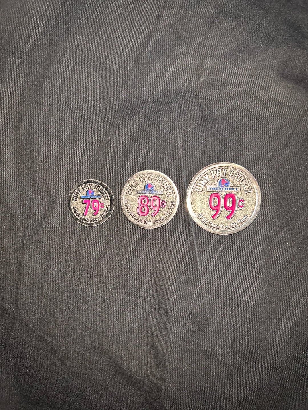 Found these while looking through an old box of coins. What are they worth?by ThomasLenguini taco bell 2 Comments MCPlagueis 2 weeks ago About $2.67 Fuzzy_Welcome8348 2 weeks ago Not muchWrite A CommentYou must be logged in to post a comment.