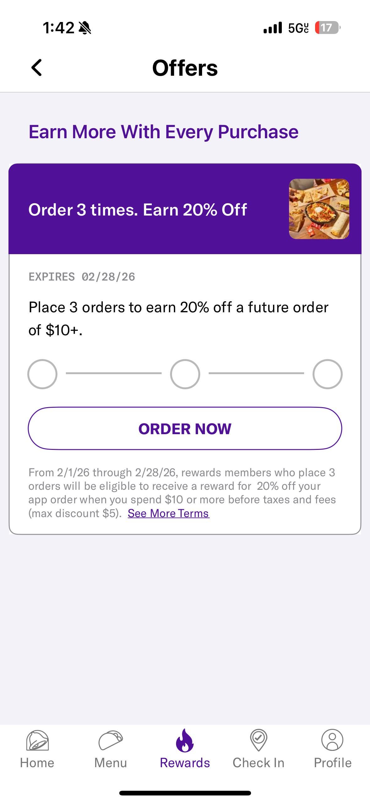 I get tacobell quite frequently. I’d be lying if I said this “offer” didn’t piss me off. Wow, 20% off? After 3 visits? Jesus christ lol, if you’re gonna give me an offer once a decade at least make it worth my while.