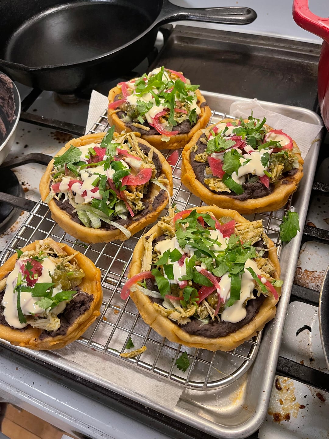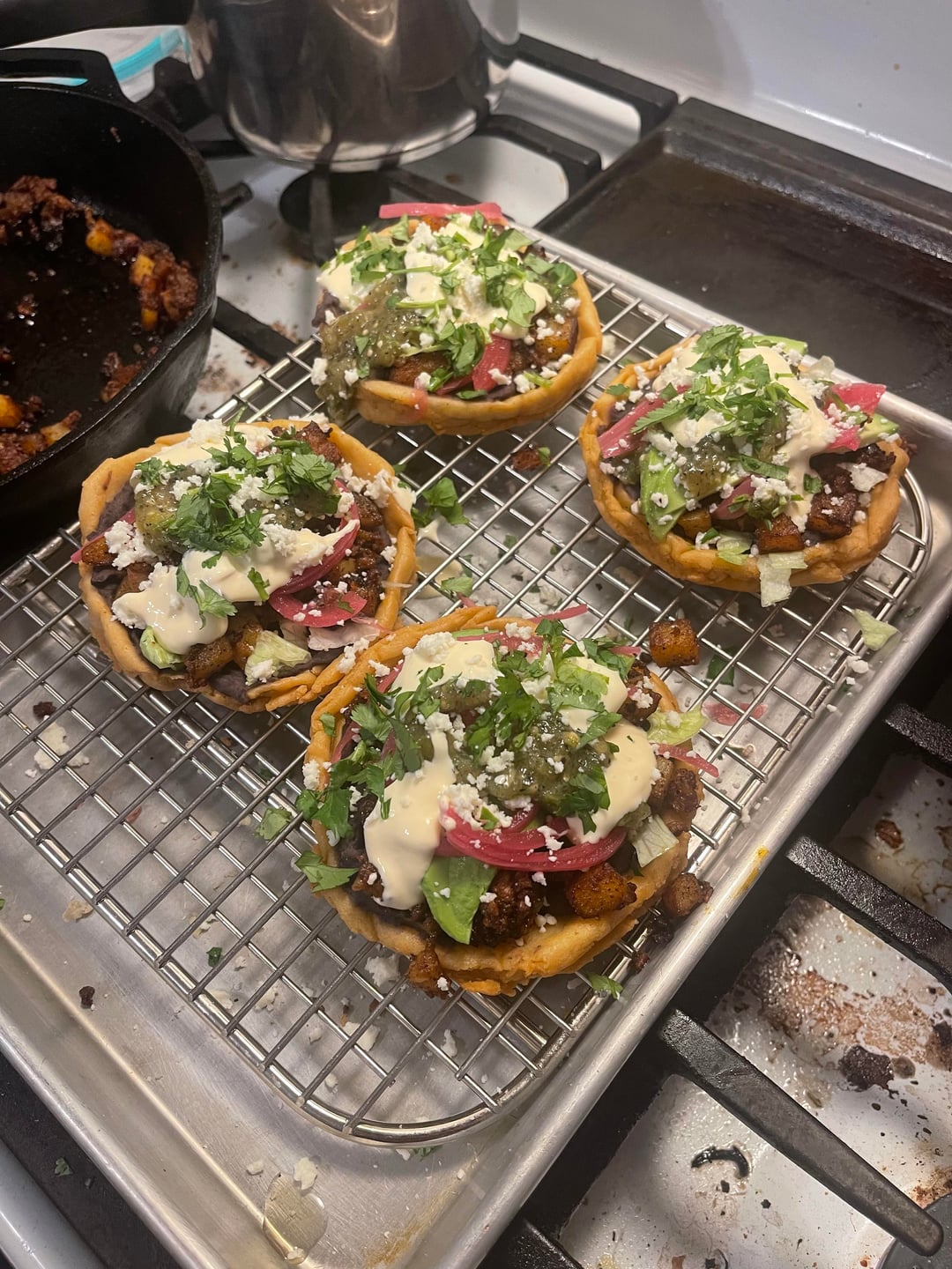 First was verde chicken, second was chorizo/potato. Both with homemade refried beans, salsa verde & pickled red onions, Salvadoran crema, queso fresco, and cilantro.by ChefSoup86 Comida mexicanamexican food 1 Comment Old_Till2431 6 days ago Looks good ๐๐ I’ll take 12 !!Write A CommentYou must be logged in to post a comment.
