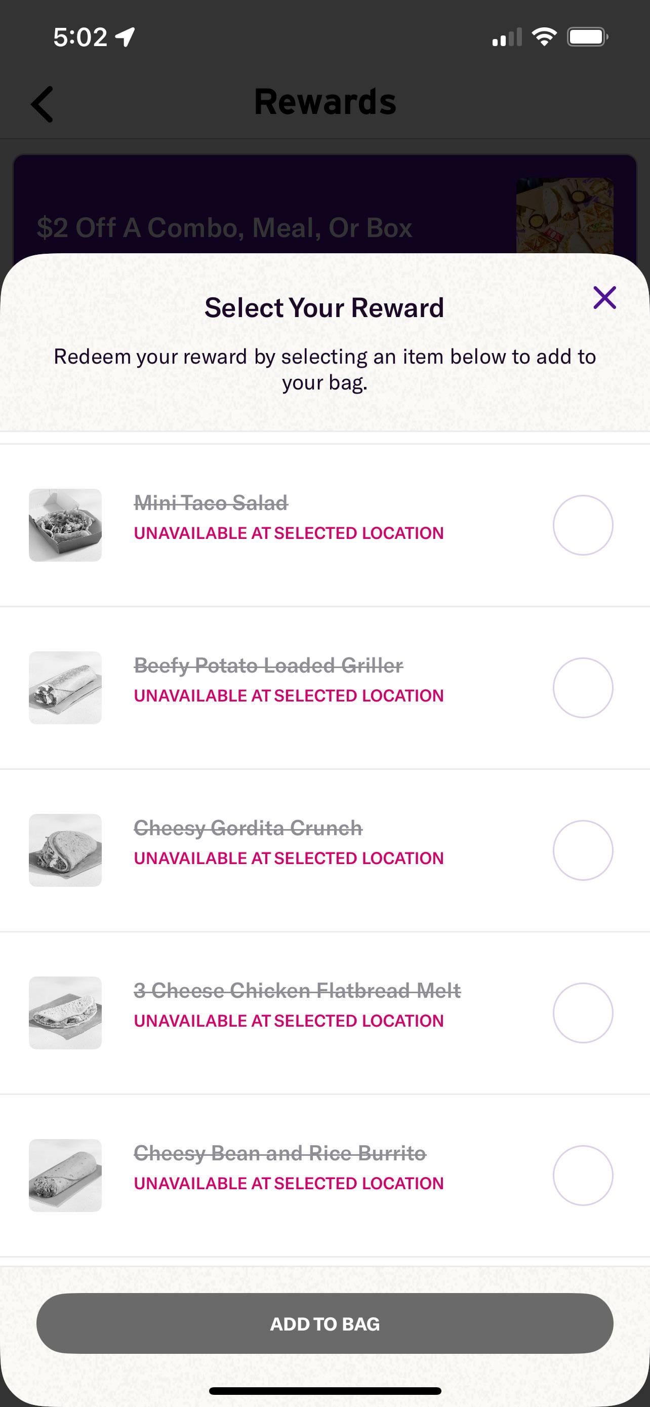Fire Rewards – why do all the Atlanta area Taco Bell’s have the right to basically turn off the rewards program with anything good ? Does it come directly from their pockets? I just want a cheesy Gordita – I emailed taco bell about this before and they said the store was testing a new model. Cont..
