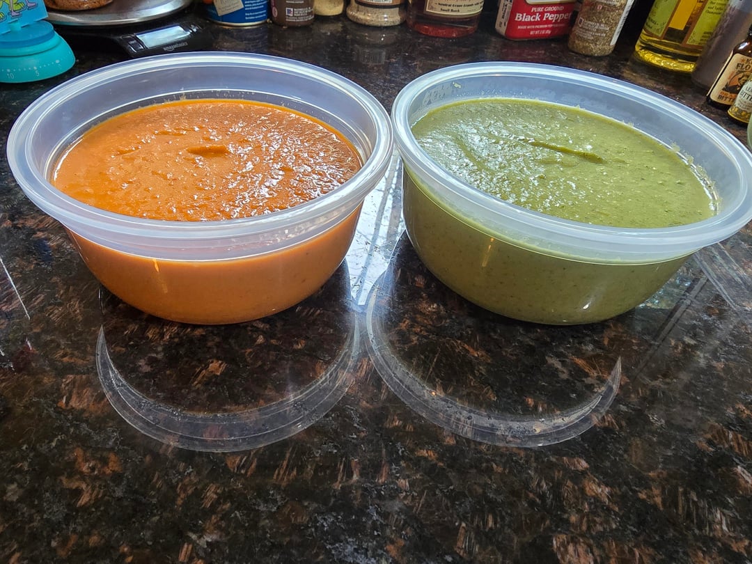 Rojo: chile de arbol, tomatoes, onion, garlic, avocado oil, cumin, coriander, salt, pepper, MSGVerde: jalapeños, tomatillos, onion, garlic, cucumber, cilantro, avocado oil, cumin, coriander, salt, pepper, MSGby Tounage pico de gallosalsaSauce 4 Comments Tounage 2 hours ago I forgot to list chicken bullion and lime juice for the verde. jazzy095 2 hours ago Looks amazing. Look at that texture Fuzzy_Welcome8348 2 hours ago Looks fantastic! Great job MagazineDelicious151 2 hours ago Looks really good, never heard of cucumber in verde before but it does match the color palette.Write A CommentYou must be logged in to post a comment.