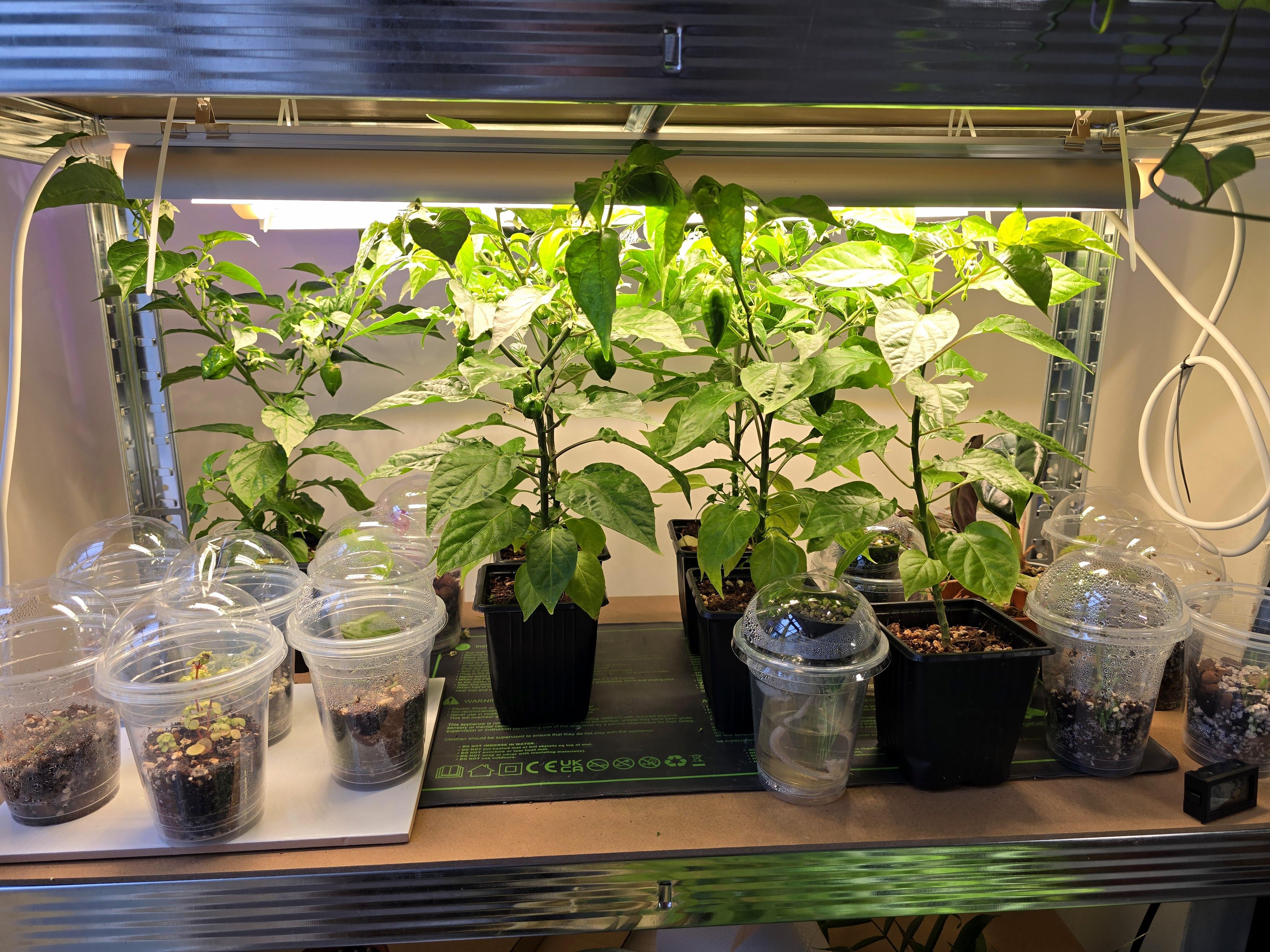 As you can see, my current chilli pepper plants have outgrown their current shelf. I am setting up a different space for them in another room. They will have more vertical space and three Barrina T8 lights.