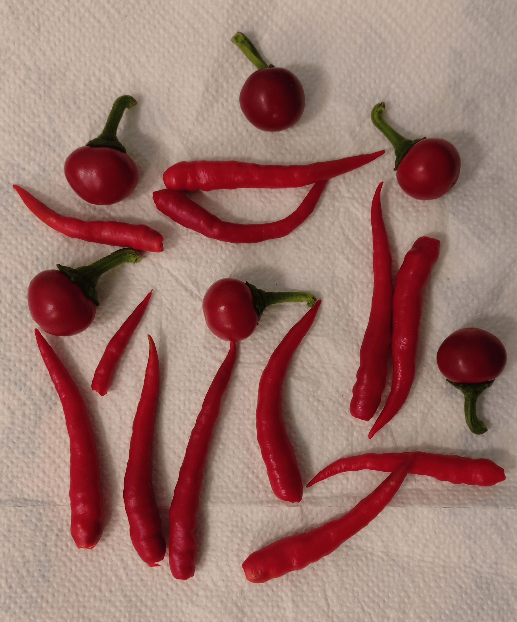 My chilli plants were suffering a lot from all the mistakes Ive made and havent grown much, but still managed to bear few fruits each. Both varieties on the photo are local cultivars of C. Annum named Korál (coral) and Damián, about 30000 SHU.