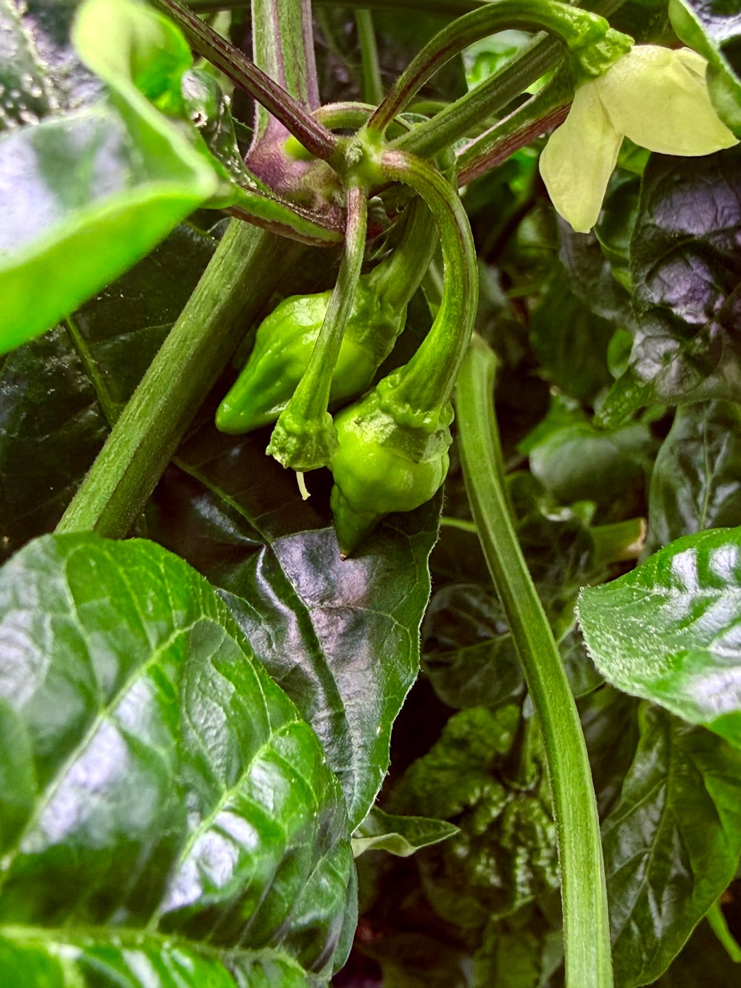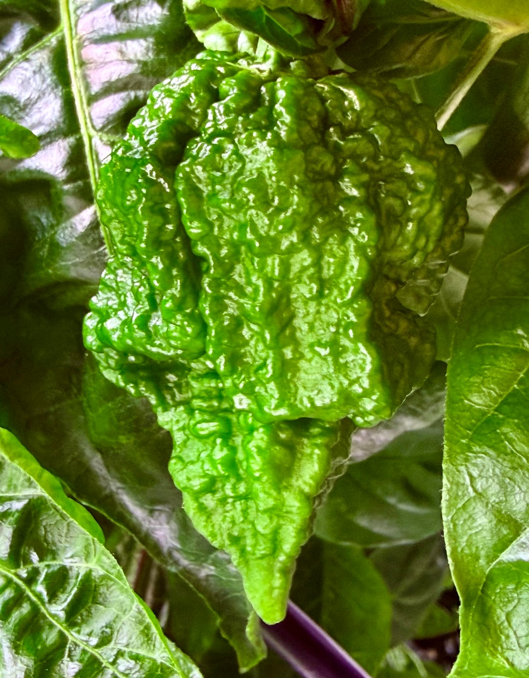 New growers take note. These peppers have been on the plant for a hot minute and haven’t ripened. Superhot peppers are a slow burn and can take ages to ripen. If you live somewhere with a short grow season (US Grow Zones lower than 5) you’re going to want to get started early (indoors) if you want to sample any ripe peppers.