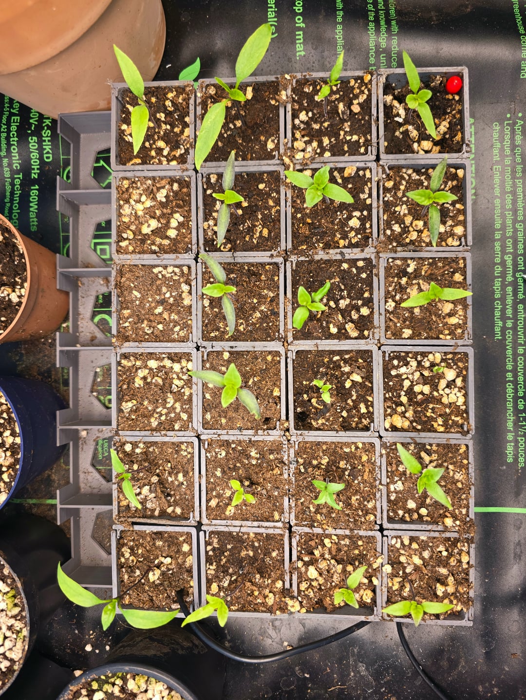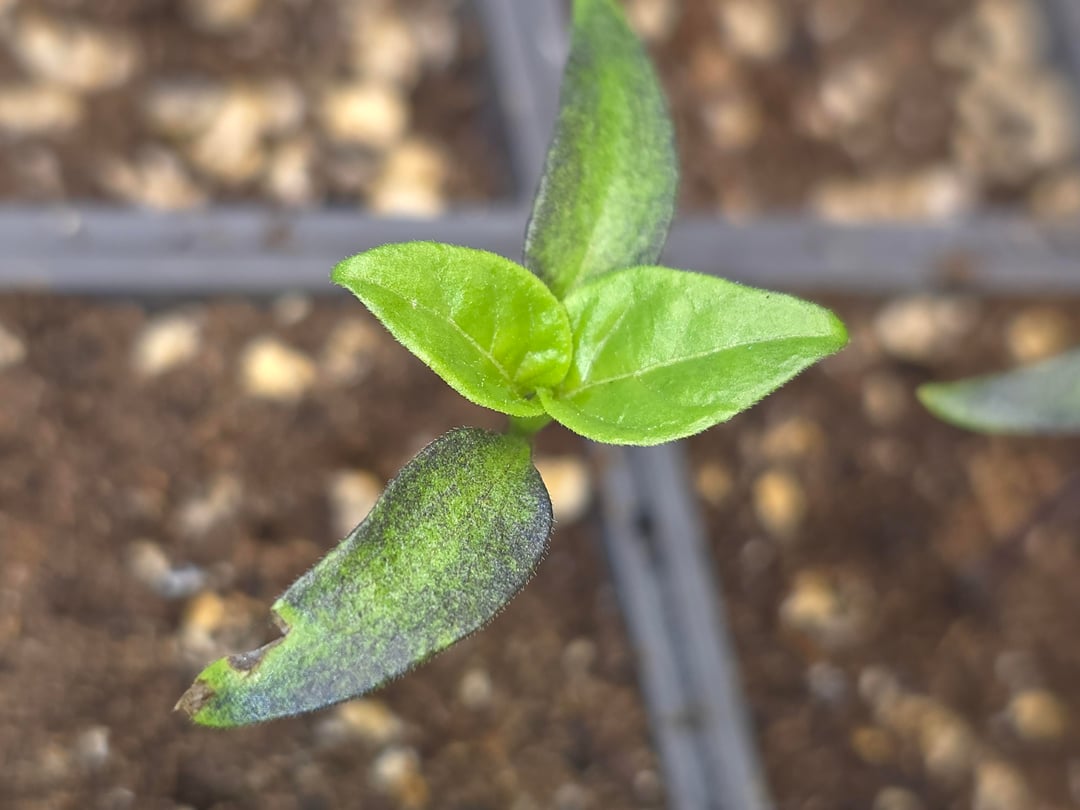 All of them look healthy but some have this weird dark patches but only on the cotyledons. I know some peppers have the anthrocyanins and stuff that darken the leaves but does it mean I should be lowering the light output slightly? Its a madame jeanette btw, all 3 show the same kind of effect. Anyways, I'm waiting on some pots to arrive from aliexpress so I can repot these plugs into a proper home until they can go in the greenhouse.