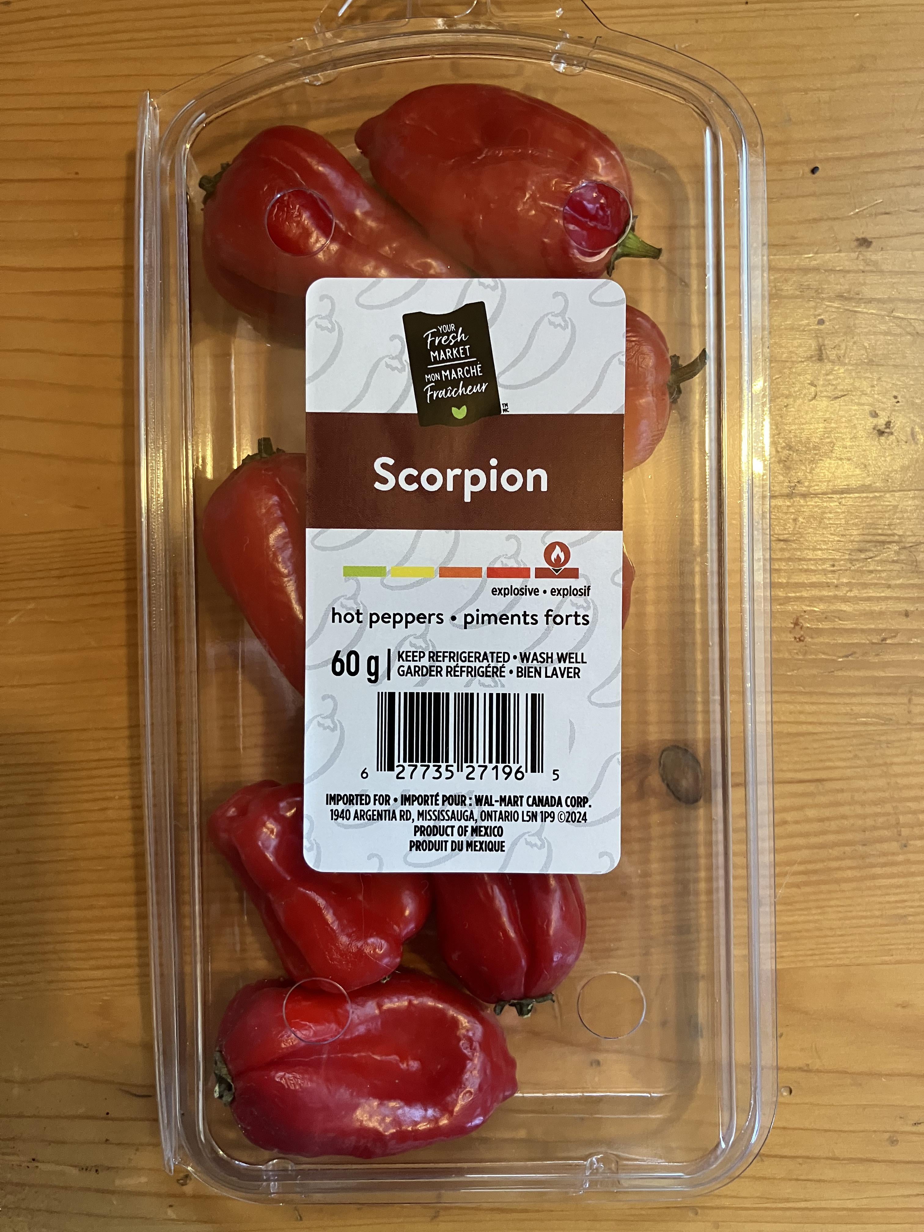 “Scorpion” peppers? What a joke. These have almost literally zero heat. I guess they’ll be good for diluting actual superhots, but what a disappointment! They taste like habaneros and have none of the fruity, floral smell of superhots. Sigh…