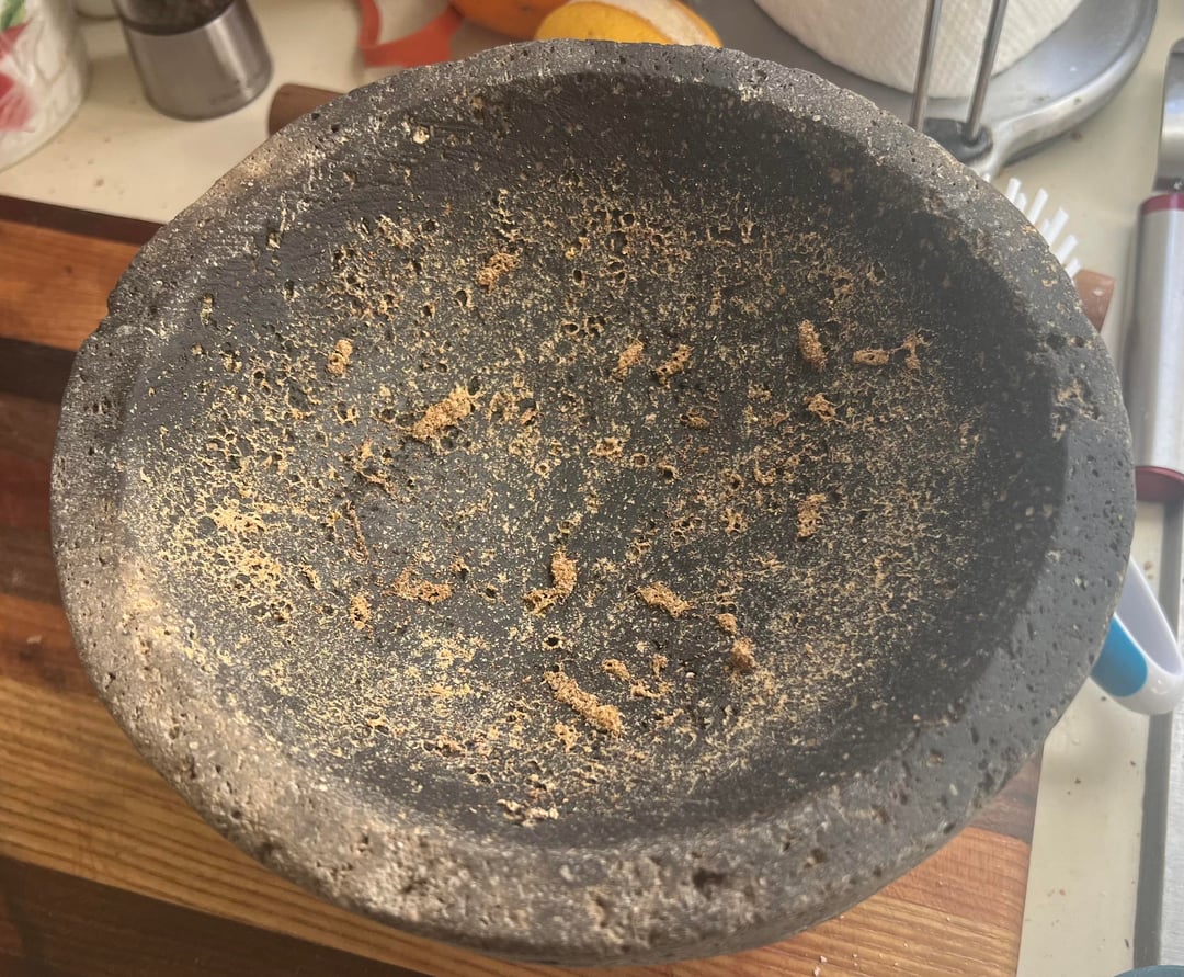 I just grabbed my molcajete and found it looking like this. I’m guessing it’s some sort of fungus.