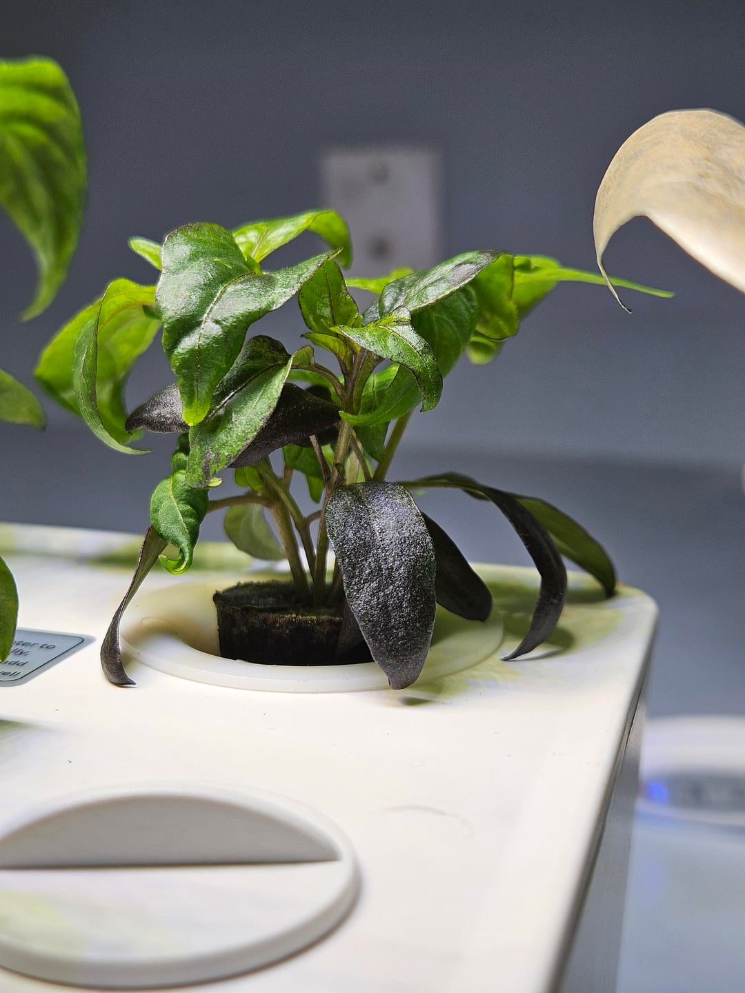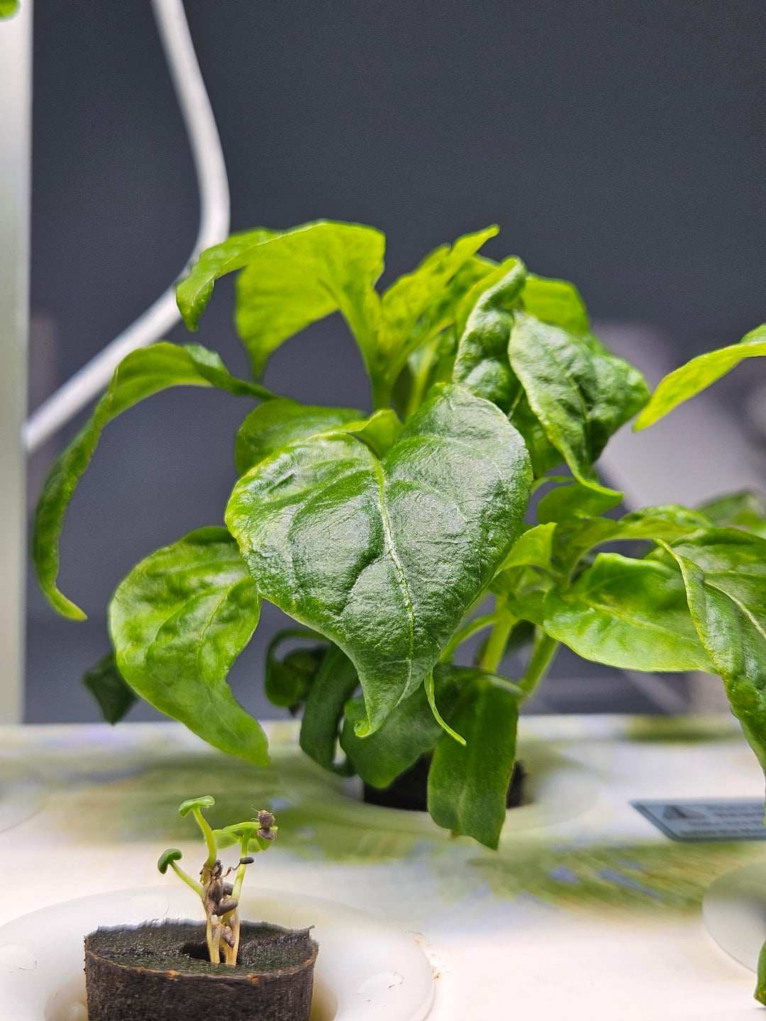 Ignore the miniscule Basil from a couple of weeks ago at the front. The nice one at the back is an F2 variegated bleeding calix with cluster pods x petalosa
