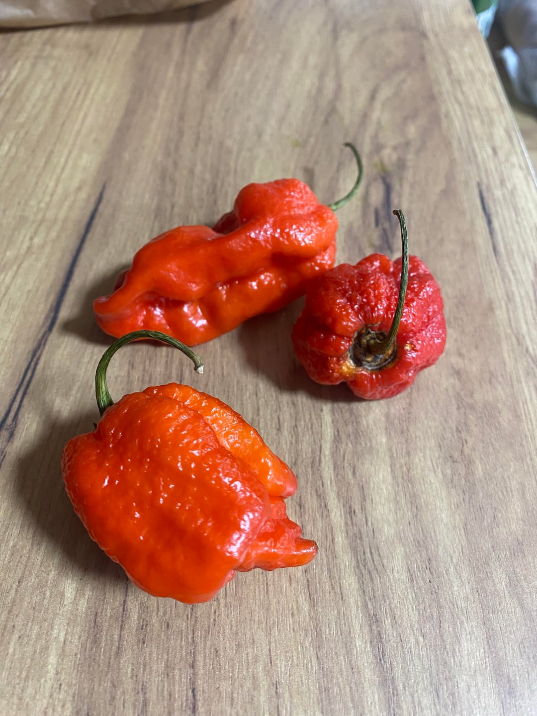 I ordered few fresh peppers online that were labeled as Carolina Reapers, but the larger one doesn’t look like a reaper to me. Can anyone help confirm if it’s legit or if I got something else?