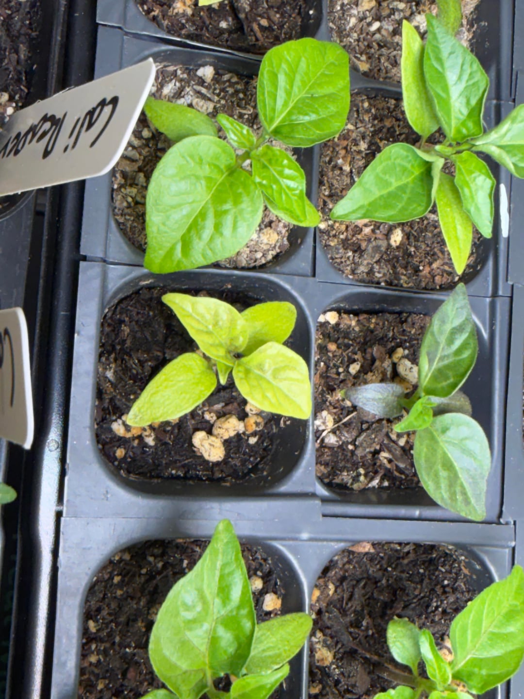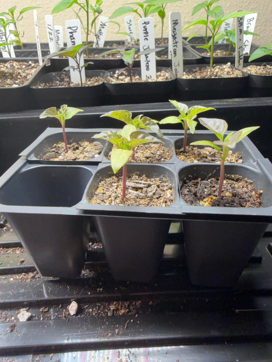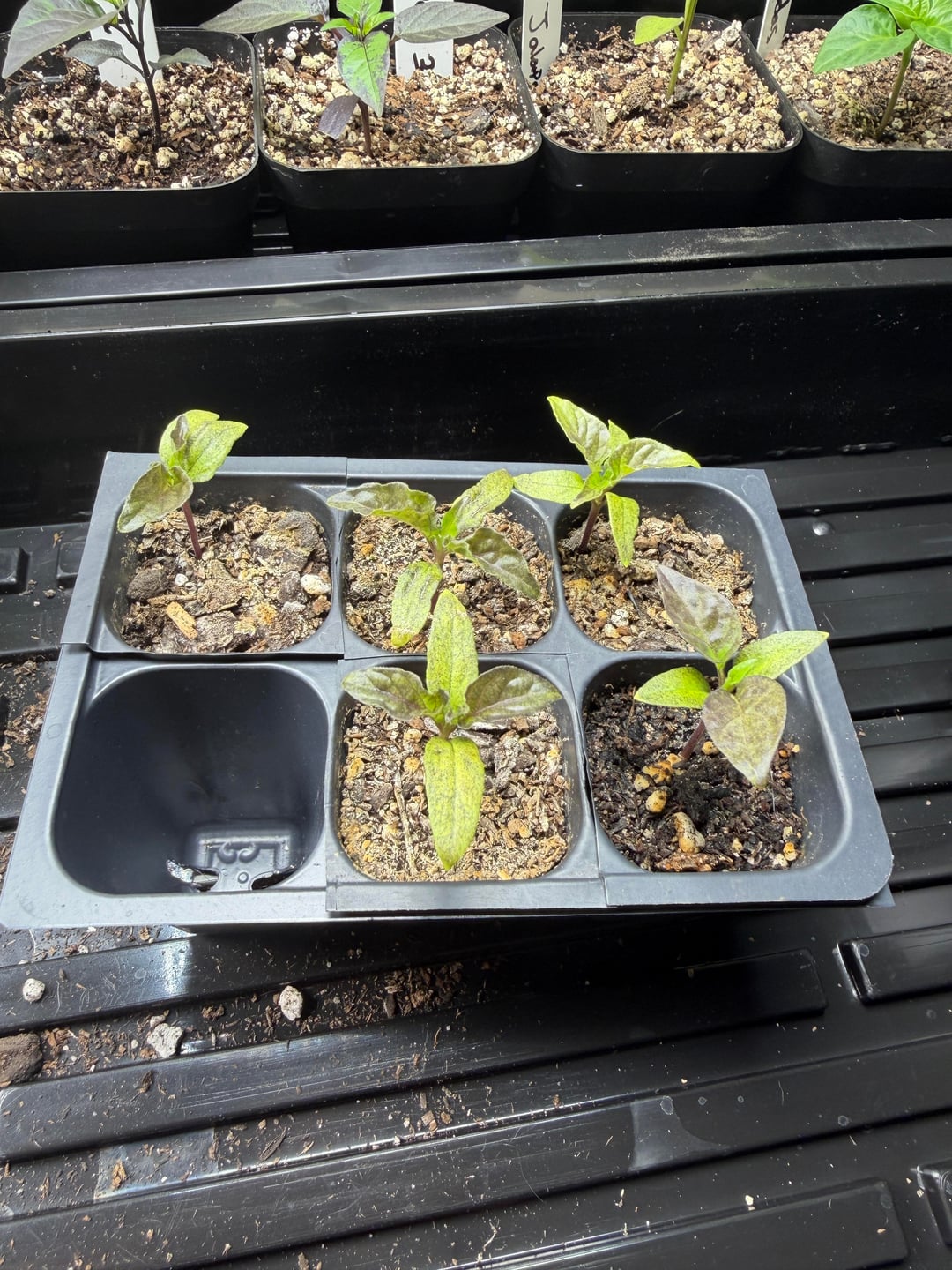 So some of my seedlings dont seem to be doing as well as my other plants. In the first picture, the plants are way more yellow in-person and the leaves are curling upwards, like a taco shell. They are also growing super slow compared to all of my other plants, most of my plants sprouted between 1/21-1/26 and are doing pretty well but these ones arent for some reason. In the second and third picture, I have Super Bhut Jolokias and they all are turning purple although im assuming that could just be a natural thing the plant is doing.