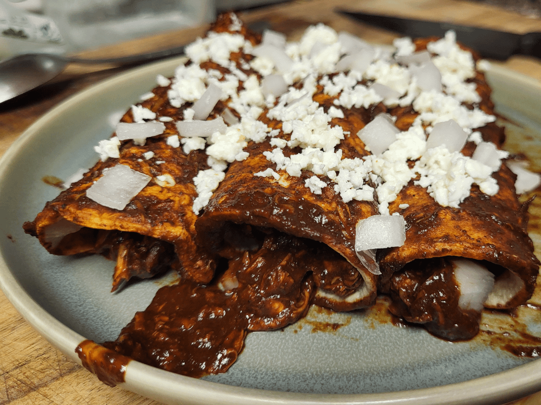 For Valentines Day my lady was hoping I could make mole from scratch and serve her enmoladas.