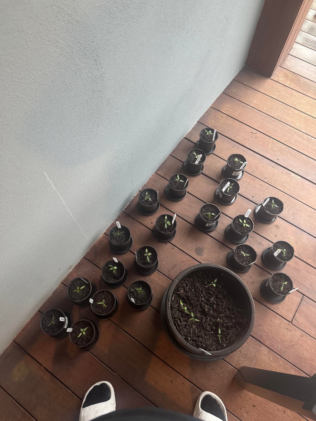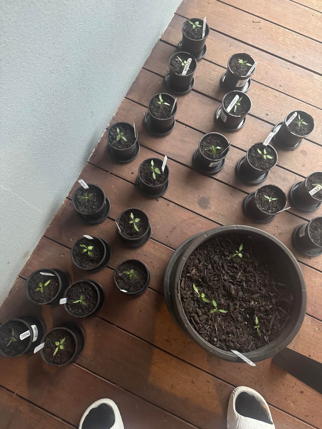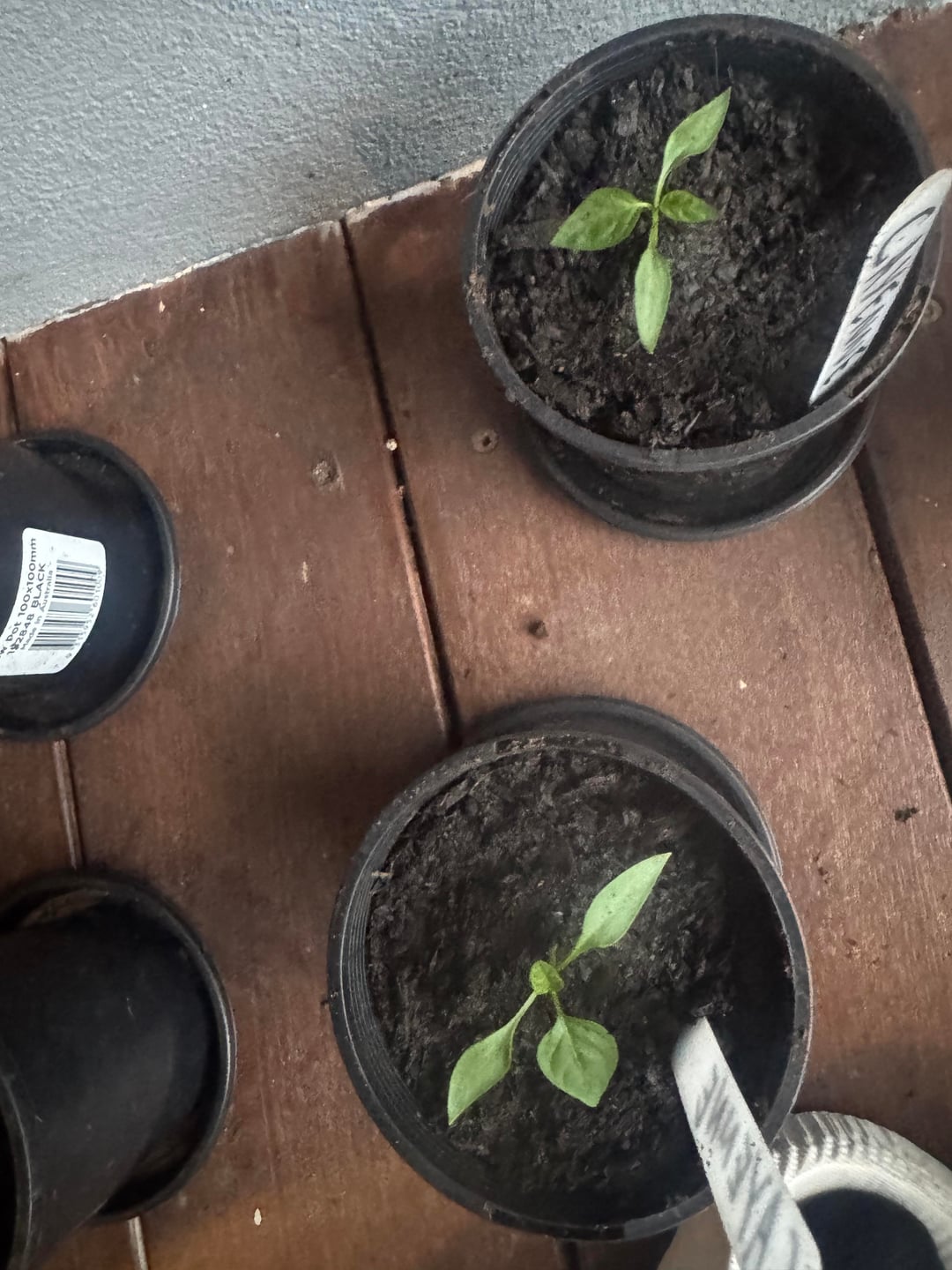Not sure if transplanted to early from all in one big pot into there own small ones. Should I have waited longer maybe for another set of leaves? Next time I am not doing it in one pot I already got a setup😅 had like 50 and chucked away roughly 20 and kept 4 in big pot where they were for now and transplanted rest and I will never do it this way again! This is my first time growing chilies and legit just chucked seeds in soil and watered. Expecting some to not make it but hoping some do.