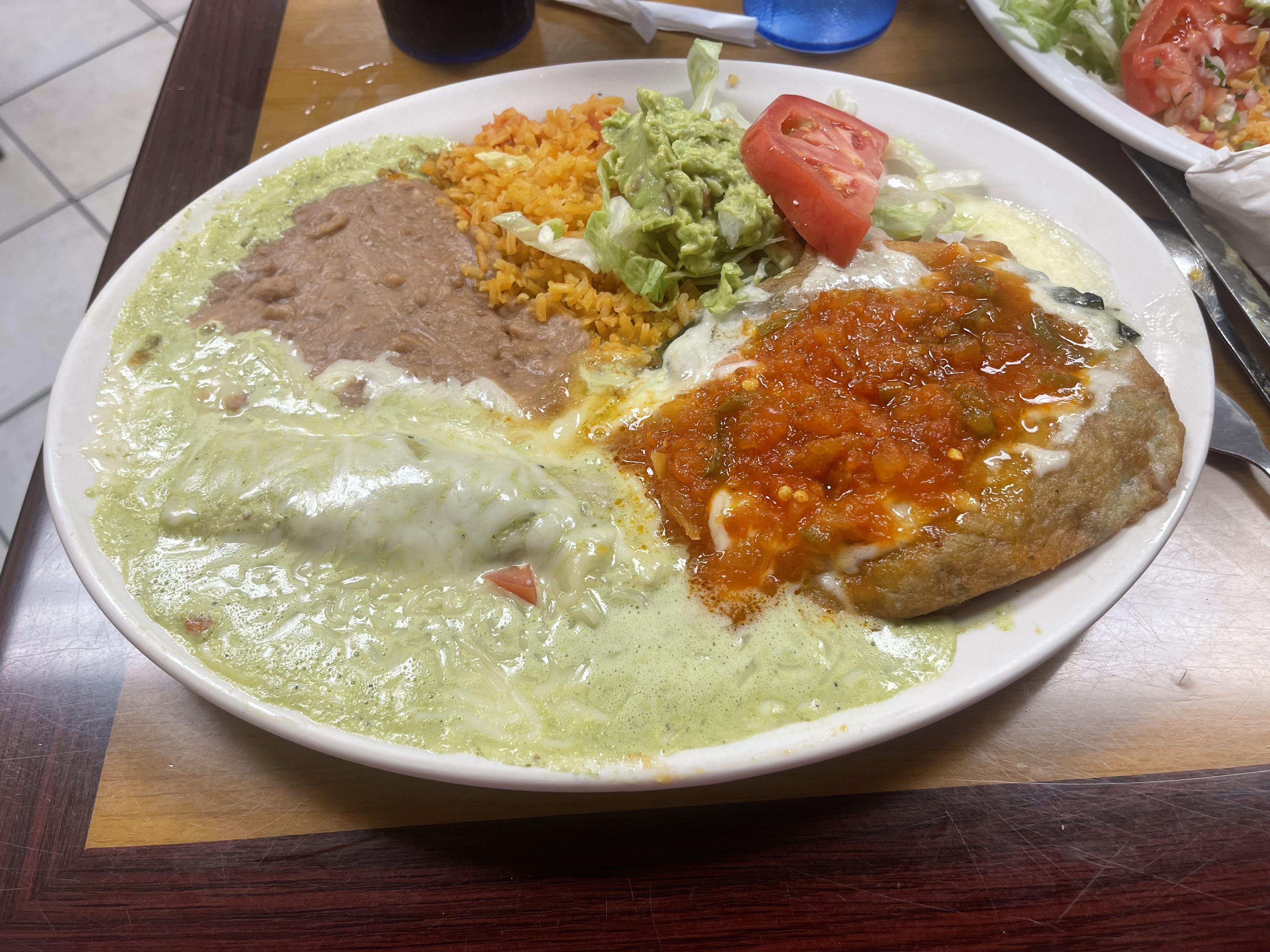 I was supposed to get a green enchilada but I donāt like salsa verde so I substituted it for a poblano enchilada.