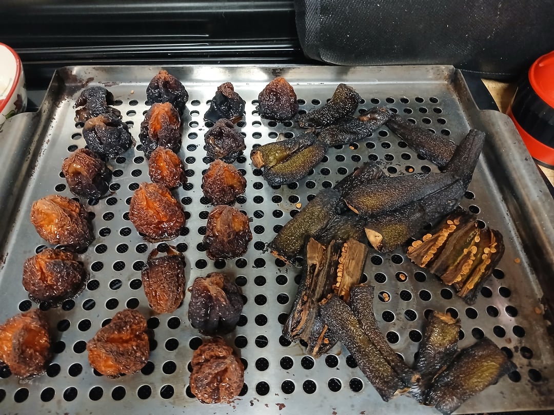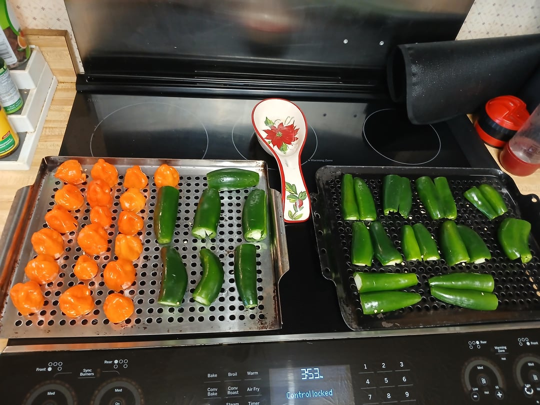 It’s a variation on the recipe in the last picture. Added some frozen mango too, 3 sweet onions(2 caramelized), 4 bulbs of garlic instead of cloves, 1.5lbs/0.5lbs smoked jalapeños/habaneros with ½lb of fresh habaneros cooked into everything. A little extra brown sugar and vinegar were added and a little salt when cooking the onions to adjust flavor.
