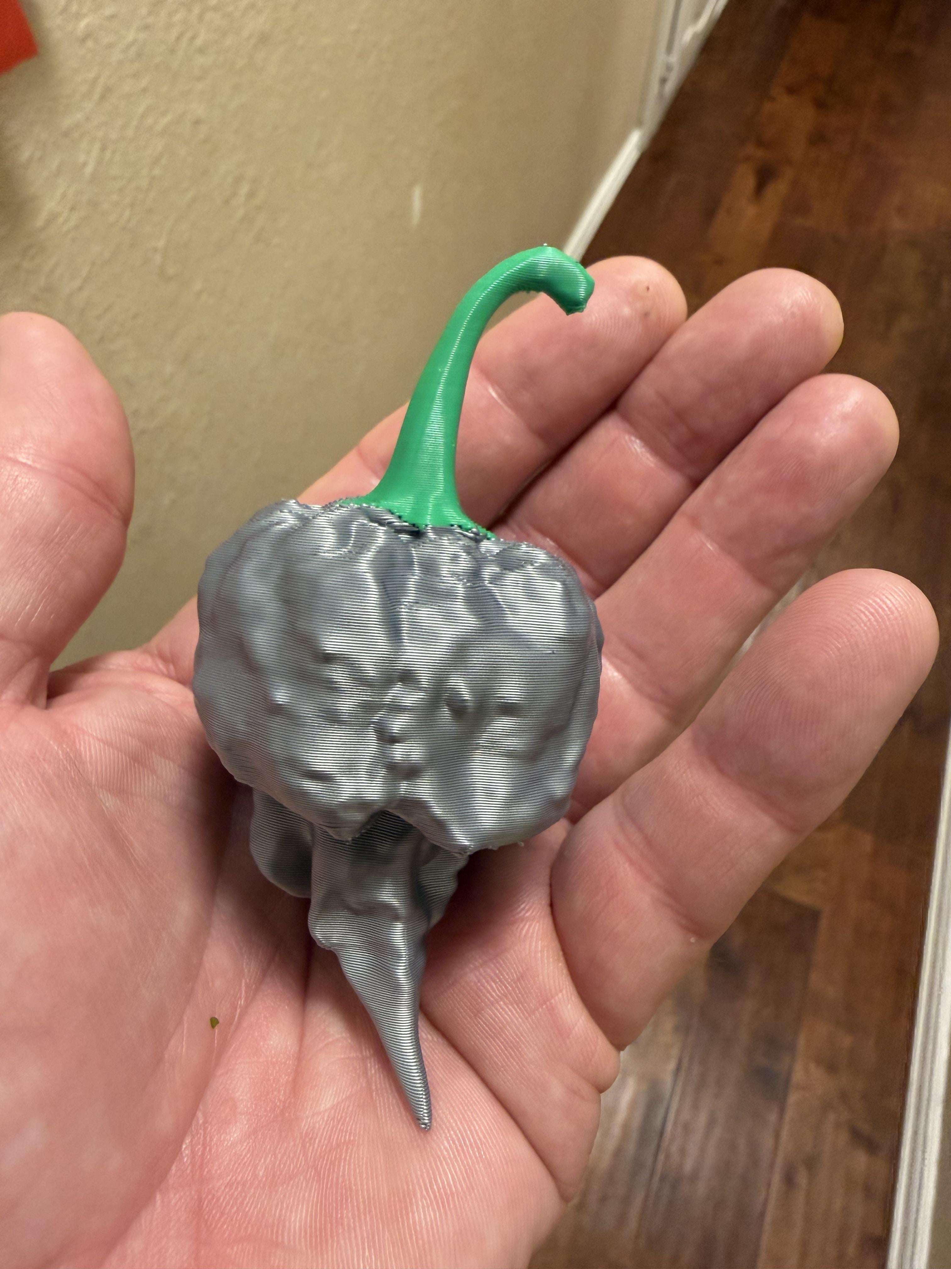 Forgot to update the AMS when I reloaded the filament. This model was created using my Chocolate Reaper as the model, constructed in Meshy, then converted to STL and ported to Bambu Labs for slicing, dicing, and printing. I’m sure there’s easier ways to do it, but I’m still learning.