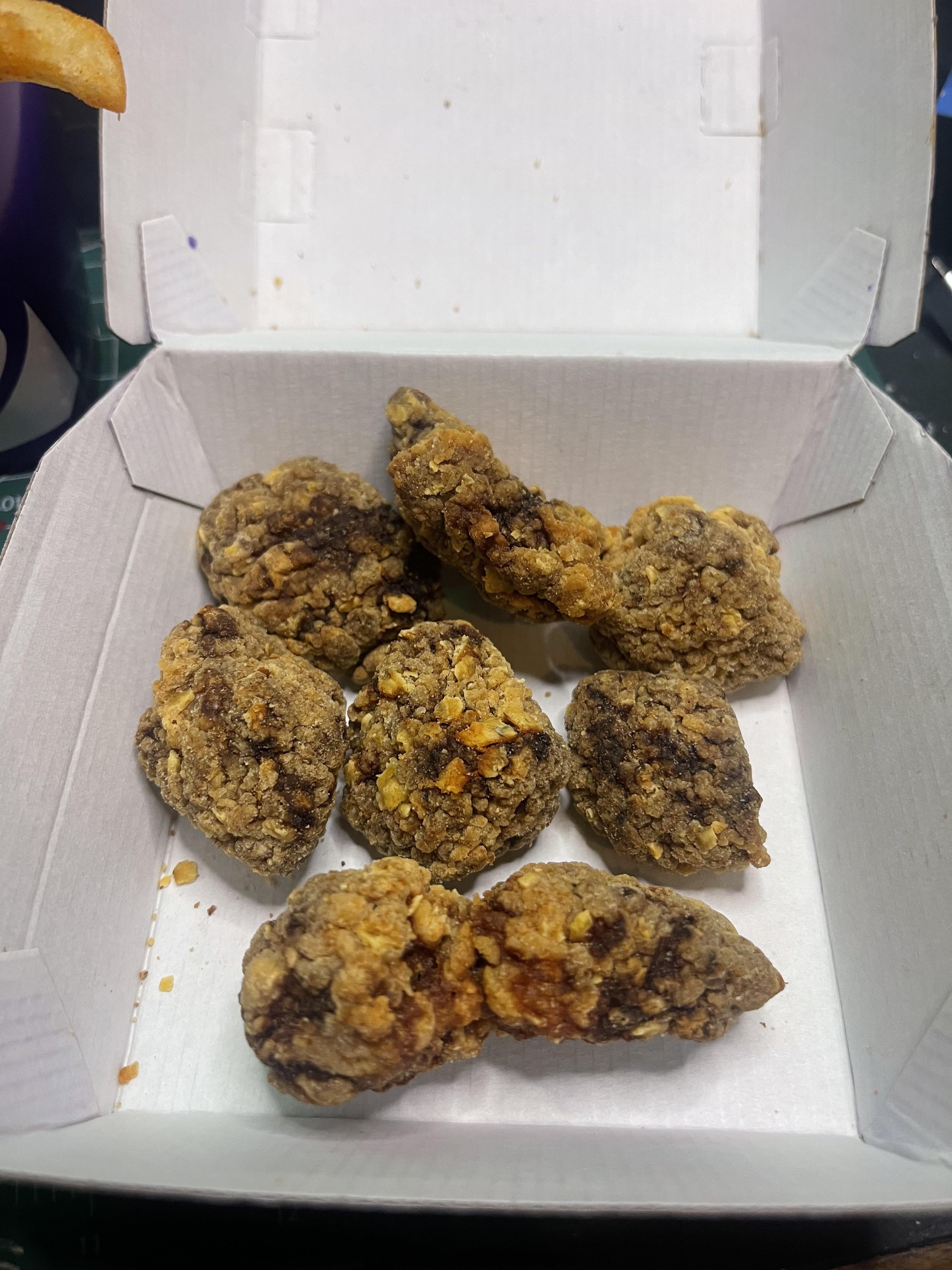 For some reason they always look like this and I can’t decide if it’s oil that needs replaced or cooked too long or held too long or the breading making it look burnt