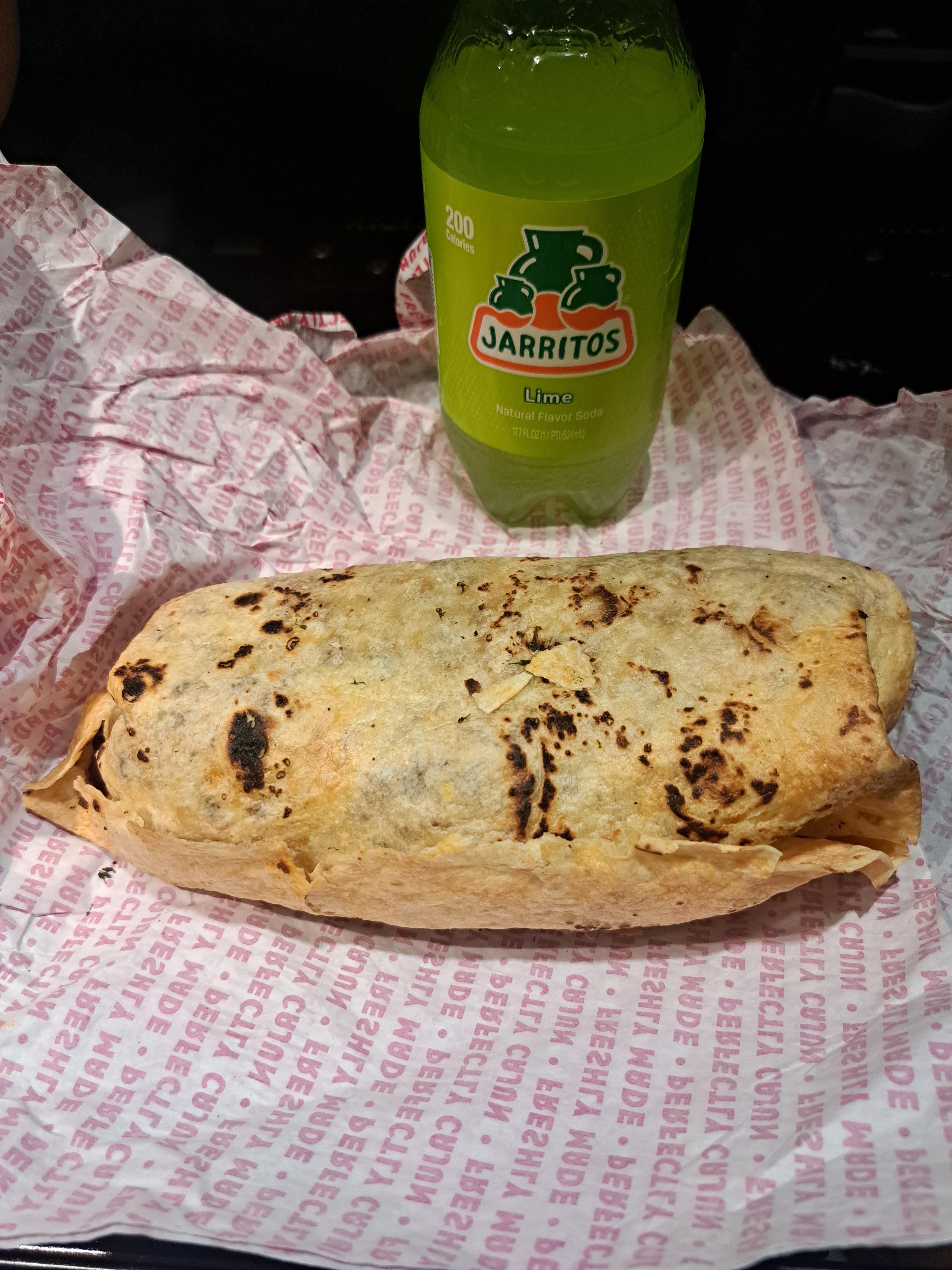 Carnitas burrito and a lime Jarriots. First time for both and both were delicious. Got it from a food truck in Salt Lake City a few days ago. It was incredibly filling. I should've saved half for another meal.