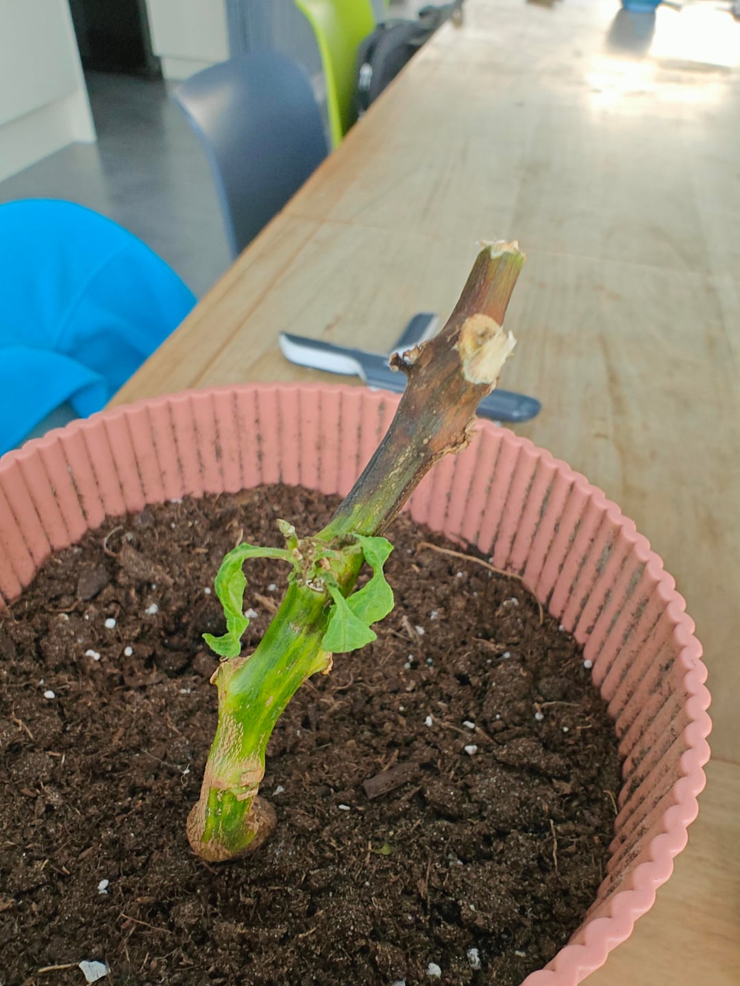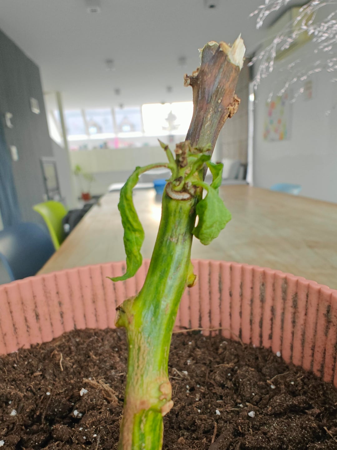 Now the top of the main stem has turned black/brown and looks dead, but the lower stem is still green and firm.