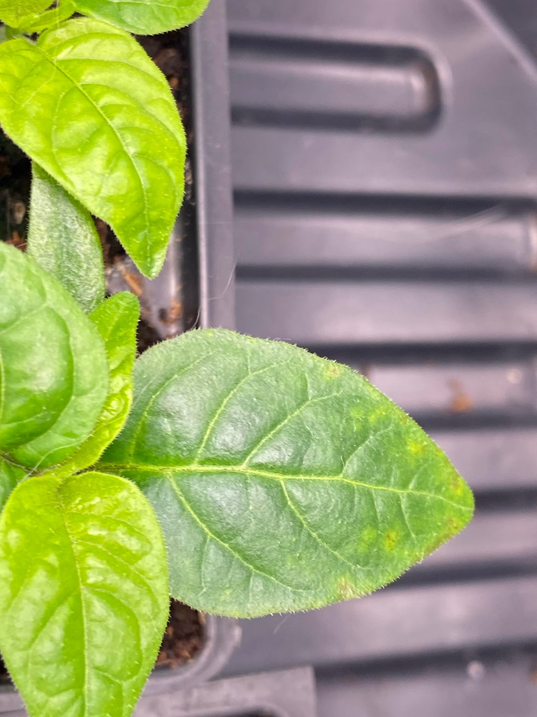 I saved seeds from last year that I’m growing this year from a plant that had bacterial leaf spot. I treated the seeds with hydrogen peroxide before planting thinking it would be enough to kill off any bacteria left. These peppers in the picture are not from those seeds but from seeds I got online (disease free). I’ve been bottom watering all my trays together so I’m kinda worried that some how the disease carried on in some of the peppers I’ve started now and may have infected all the other disease free seeds that I’m growing along side them via through the watering. Oooooor my second theory is they’re just suffering from a bit of fertilizer burn since I did give them like a 1/4-1/2 strength Alaska fish fertilizer since they’re just in seed starting mix. Or maybe the discoloration is just environmental or just normal discoloration from something small. Any one seen this before? I know it’s hard to tell this early but if I need to start over I’d rather figure it out sooner than later.