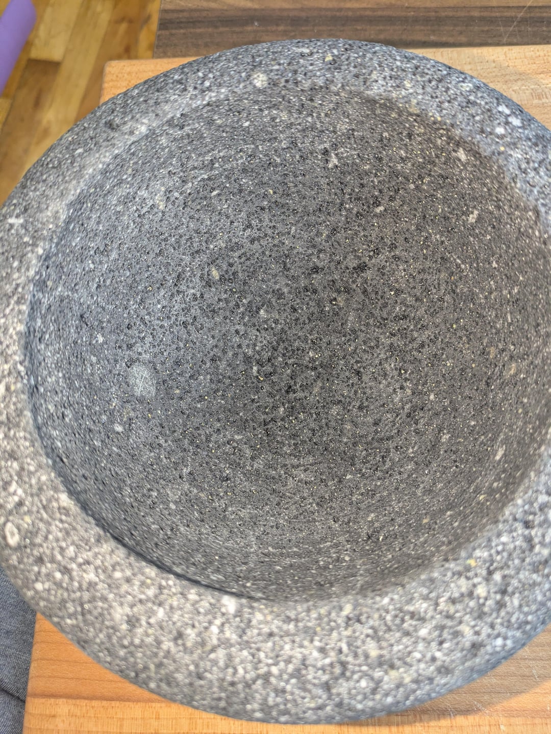 For context, I have quality Molcajete (from Masienda). I cured it properly with rice then salt and garlic both of which I scrubbed out thoroughly (I believe rice is to used to dislodge loose debree not fill the pitting. Also rice spoils)
