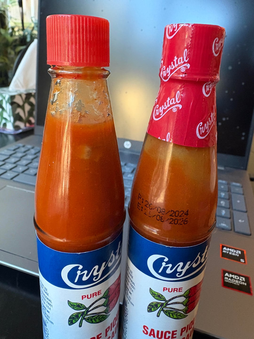Ive never seen this previous times I bought crystal. Is this normal or is it mold? It kind of looks like mold but maybe that’s physically impossible if the sauce itself is just vinegar, pepper, and salt?