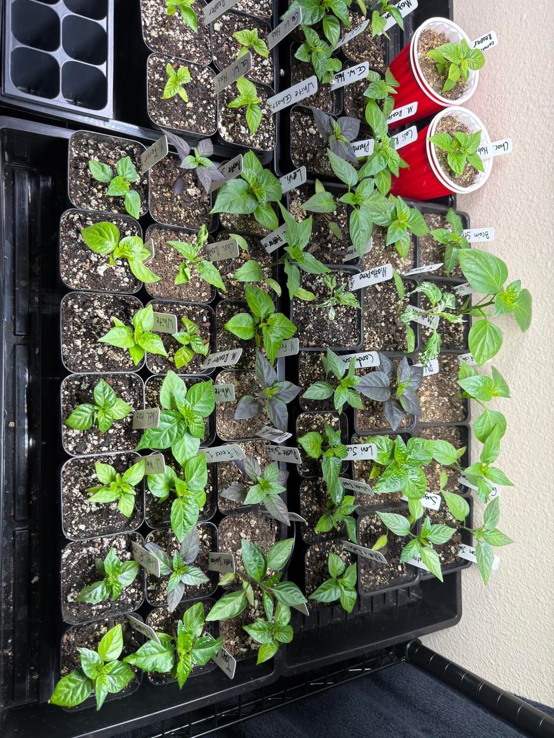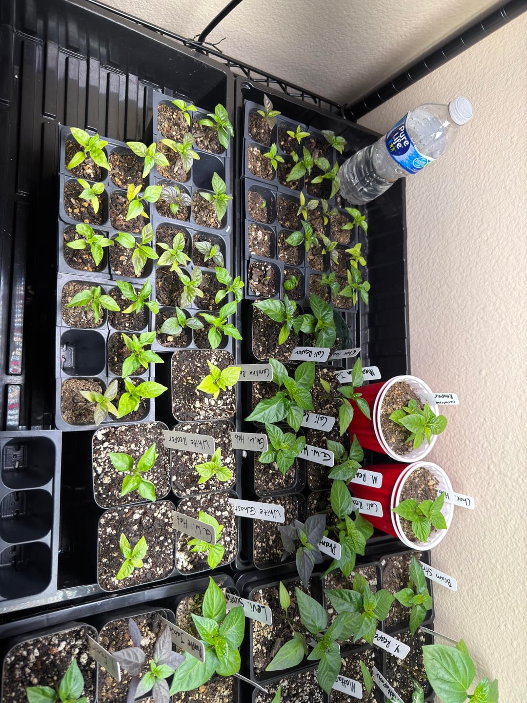 All of these peppers were planted on 1/13 and sprouted between 1/20-30. The peppers still in the cell trays will be transplanted tomorrow when im off work.