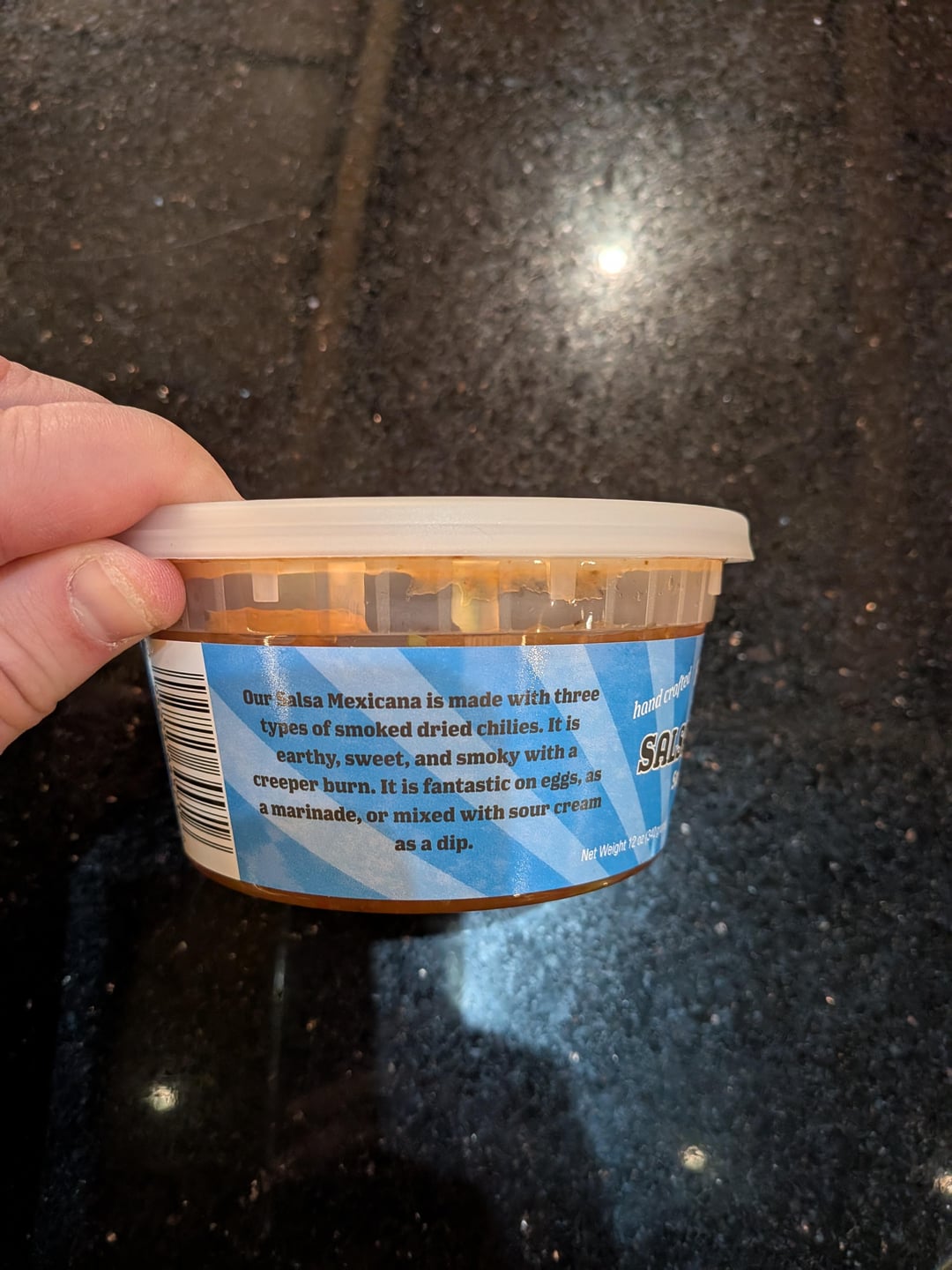 Bought my first container yesterday, chipotle. Yum! Tastes like BBQ sauce kind of. It's made locally and I walk by where they make it about once a week, looking forward to trying their other varieties 😁by doomtownpunx pico de gallosalsaSauceWrite A CommentYou must be logged in to post a comment.