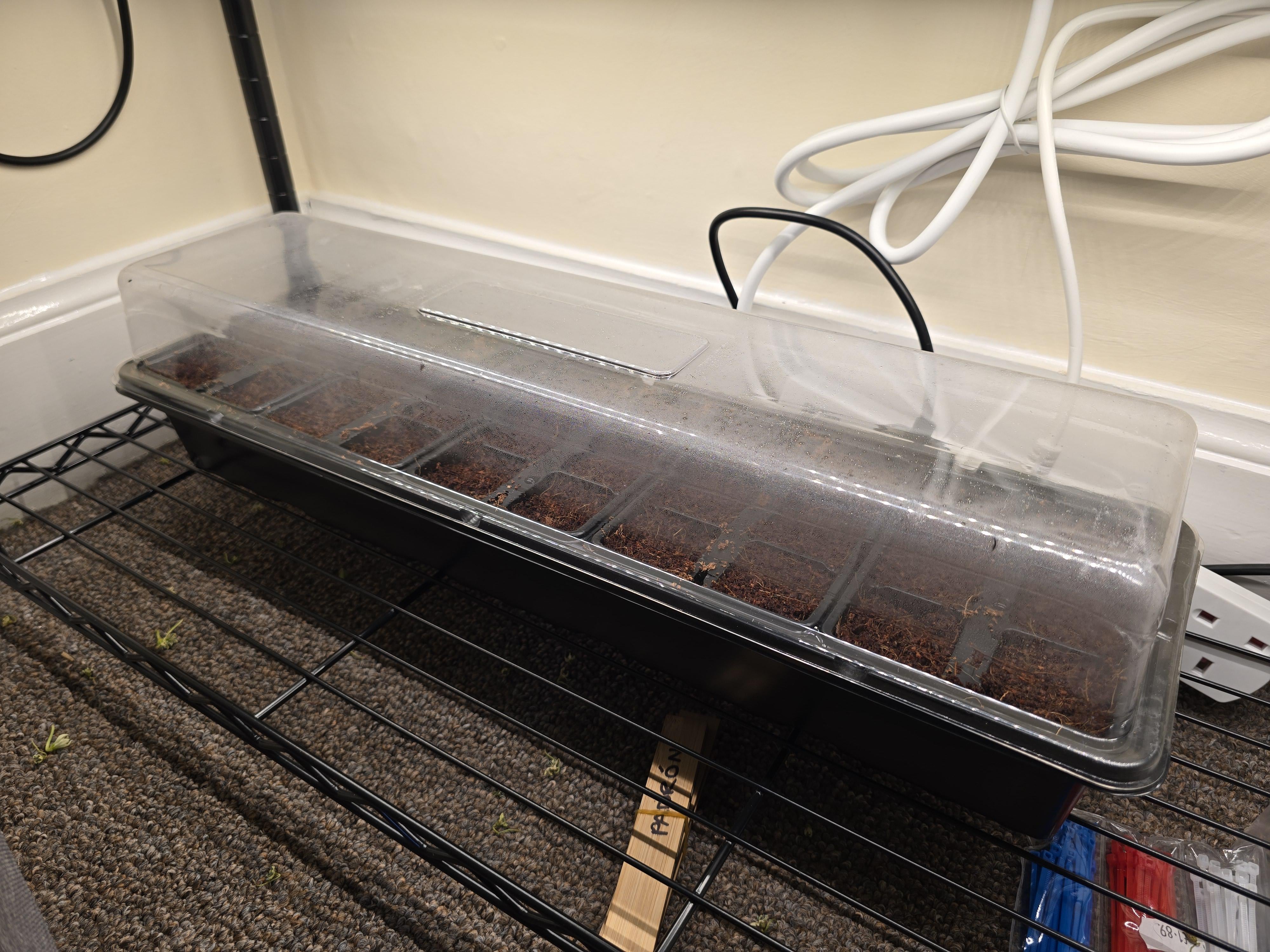 I've just planted the seeds for the peppers I'll be growing this year. I have some plants producing chillies right now in the shelf above this, grown fully indoors, but I'd like these seedlings to be as strong as possible since we're going to plant a fair amount of them in the garden this year.
