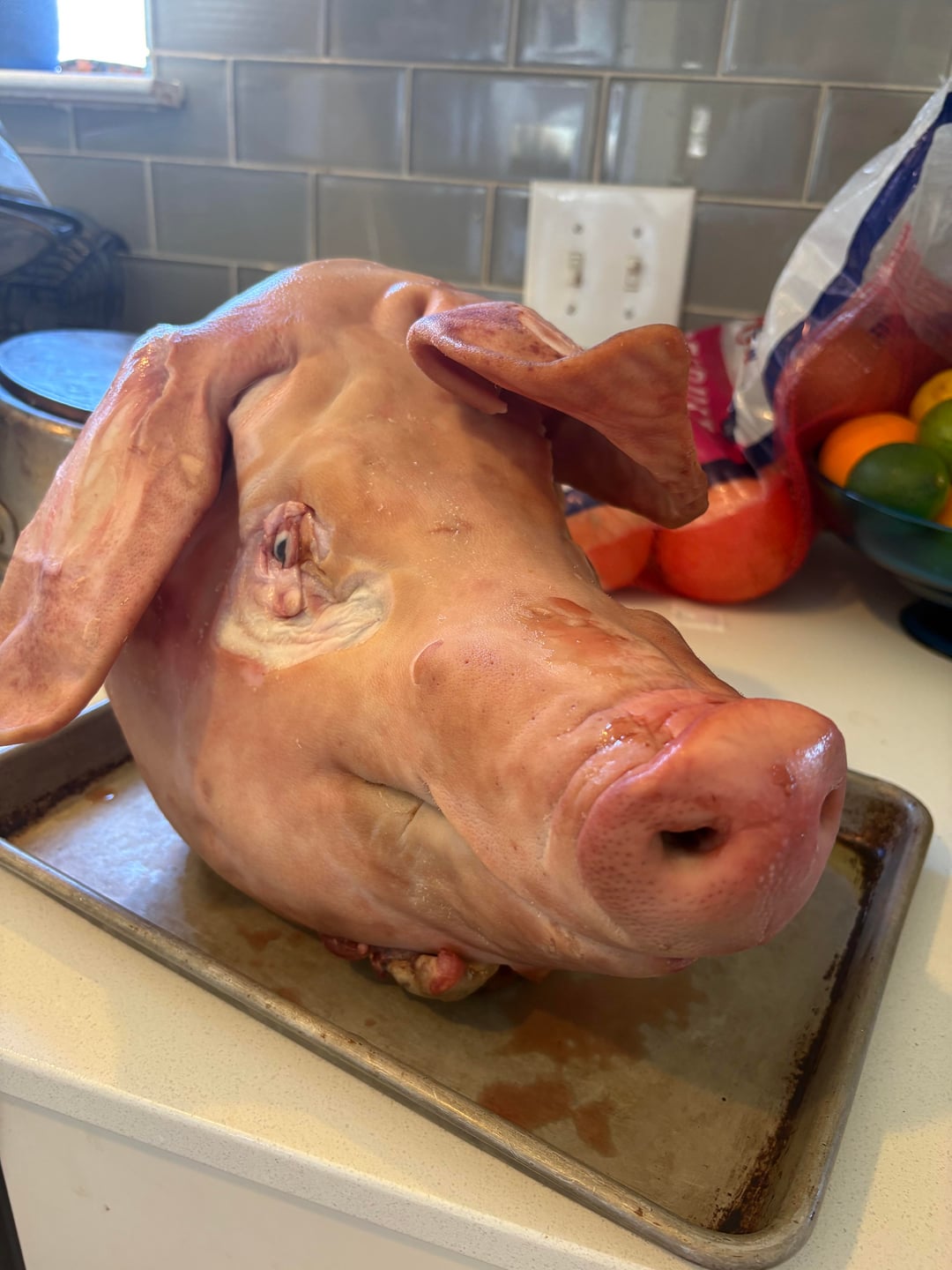 I like to make it with a pig’s head. The broth gets so rich and the slight porky funk a pig’s head has makes the flavors from the cacahuazintle and chiles more complex.