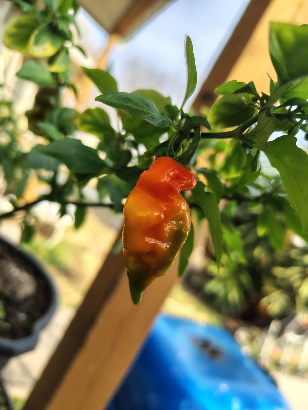 It went from Green to orange to red in a day and a half a which is faster than any other pepper plant I have. ChatGPT says it's habanero, label on the plant said Ghost Pepper when I bought, it was small plant when purchased and I transplanted it into a bigger bucket. I have an Habanero plant and they are more like small pumpkins and stop at orange. This one goes past orange into red.
