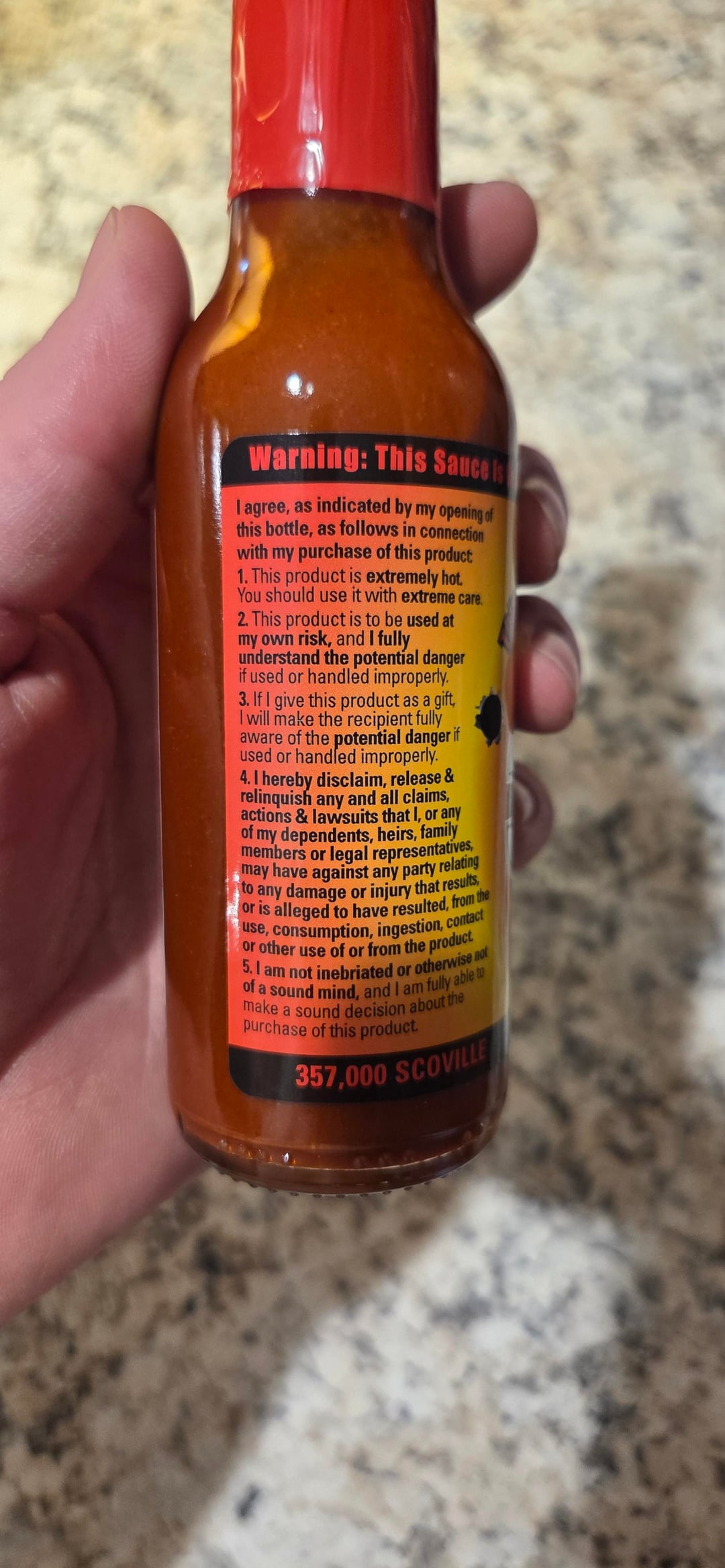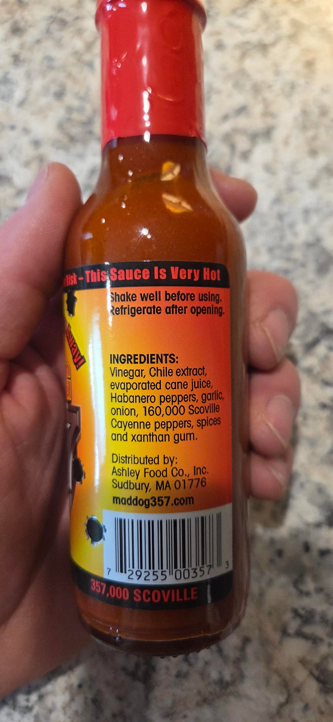 He gave it to me and I didn’t read the label and put on a generous amount and dove in to dinner. I got the hot sauce hiccups and it went downhill quickly.