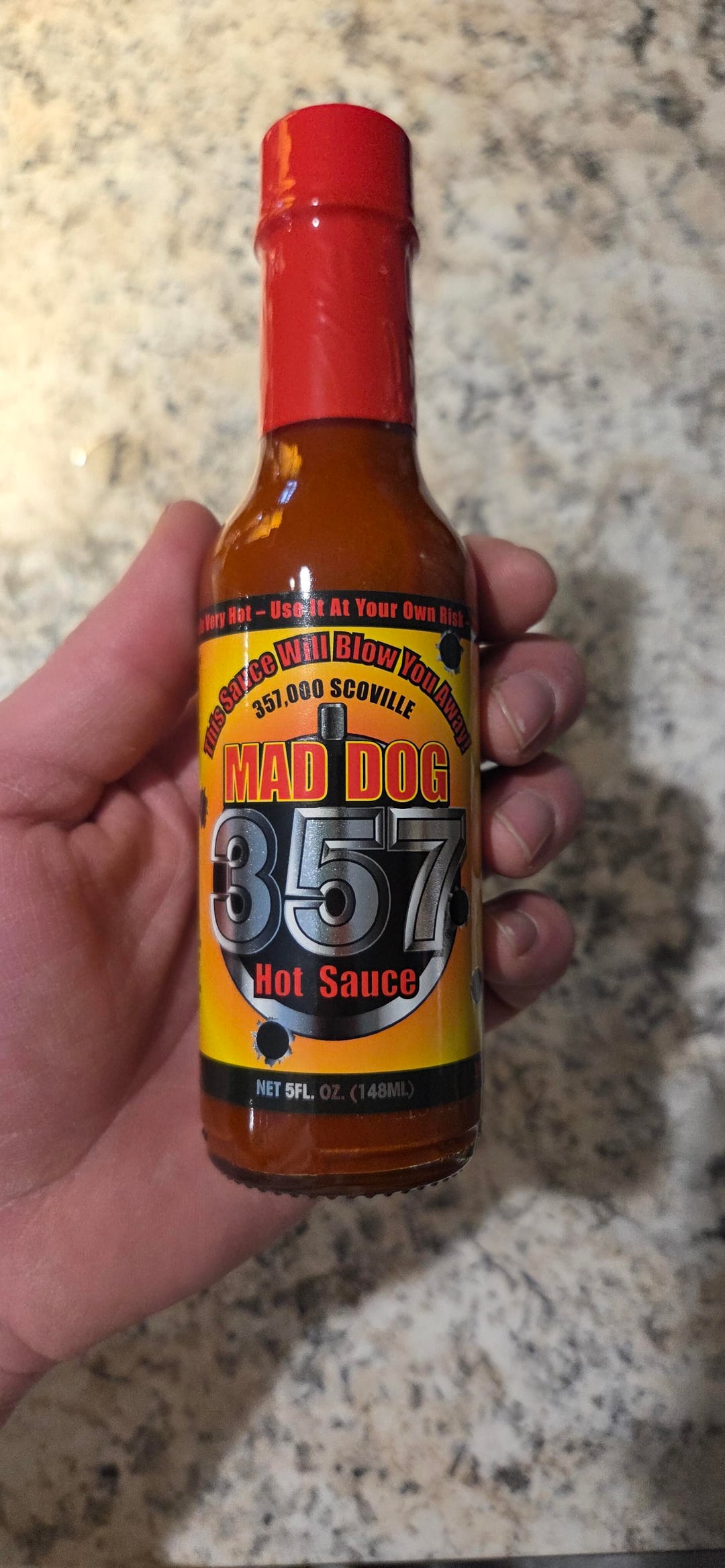 Finally got around to trying the infamous Mad Dog 357. I went in a little too confident because I've tried Elijah's Extreme Regret and didn't think it was unbearable but, this stuff is on a whole other level heat-wise. This is probably the hottest hot sauce I've ever had in my life. It felt like my tongue was getting tortured well after I ate it. I don't think it really brought much in the flavor department but as far as pure heat goes, this stuff is no joke.