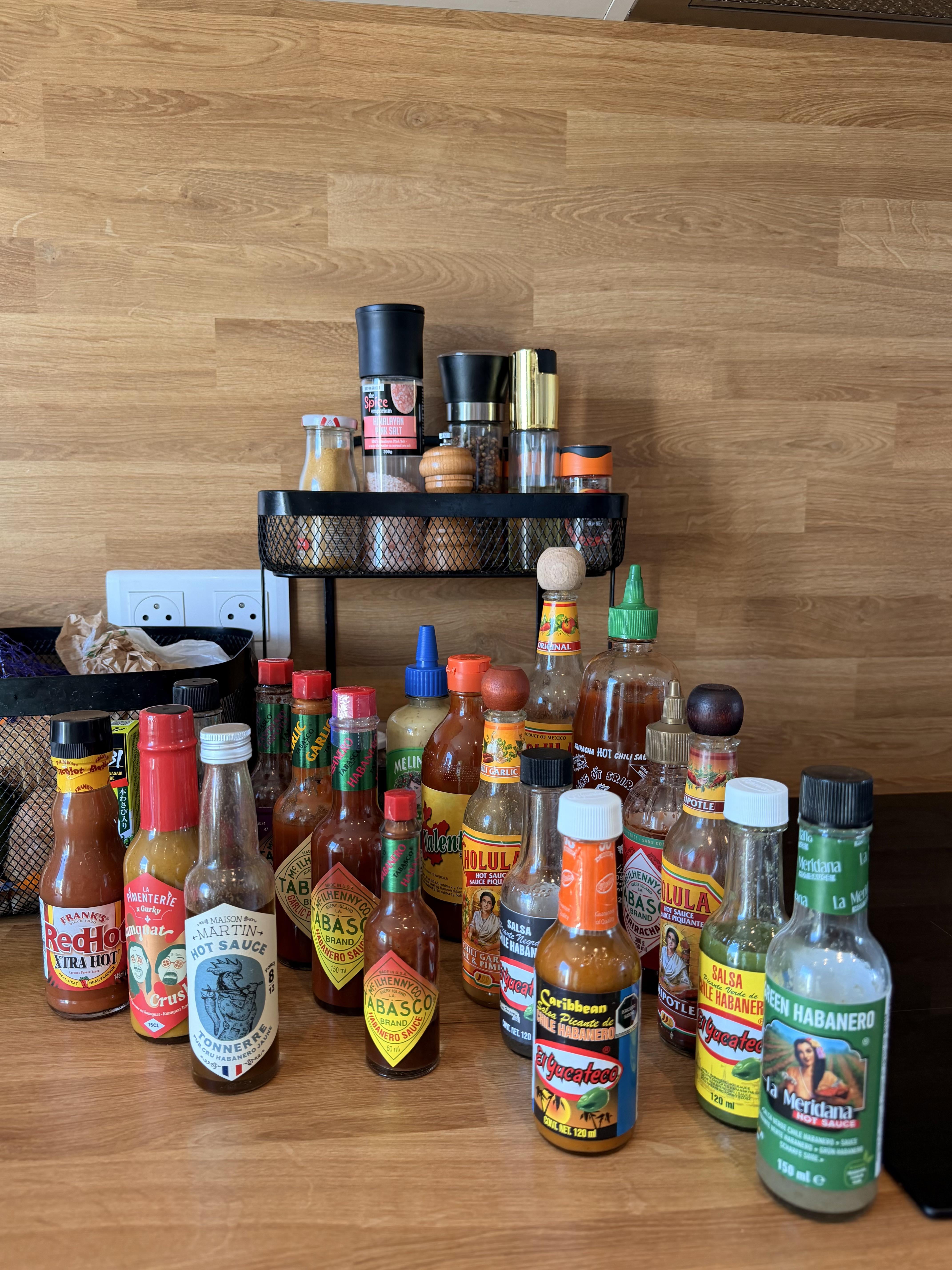 We order mostly online or grab one when we are able to get to bigger cities. Groceries here almost only carry Tabasco. The Melinda’s one has been left almost untouched because we really do not like the taste of it.