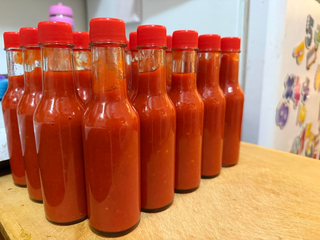 Hello all, I have just finished a small batch of my favorite Cayenne hot sauce. My own classic take on an aged Louisiana style table hot sauce, but with flavorful yet slightly fiery heat on the front of the tongue. A bit fruity (like red strawberry without the sweetness), with notes of garlic and a bright tanginess, this batch is a little milder than my usual batches of cayenne hot sauce. Grear on just about everything, especially fried chicken, pizza and eggs. A fantastic everyday table sauce.