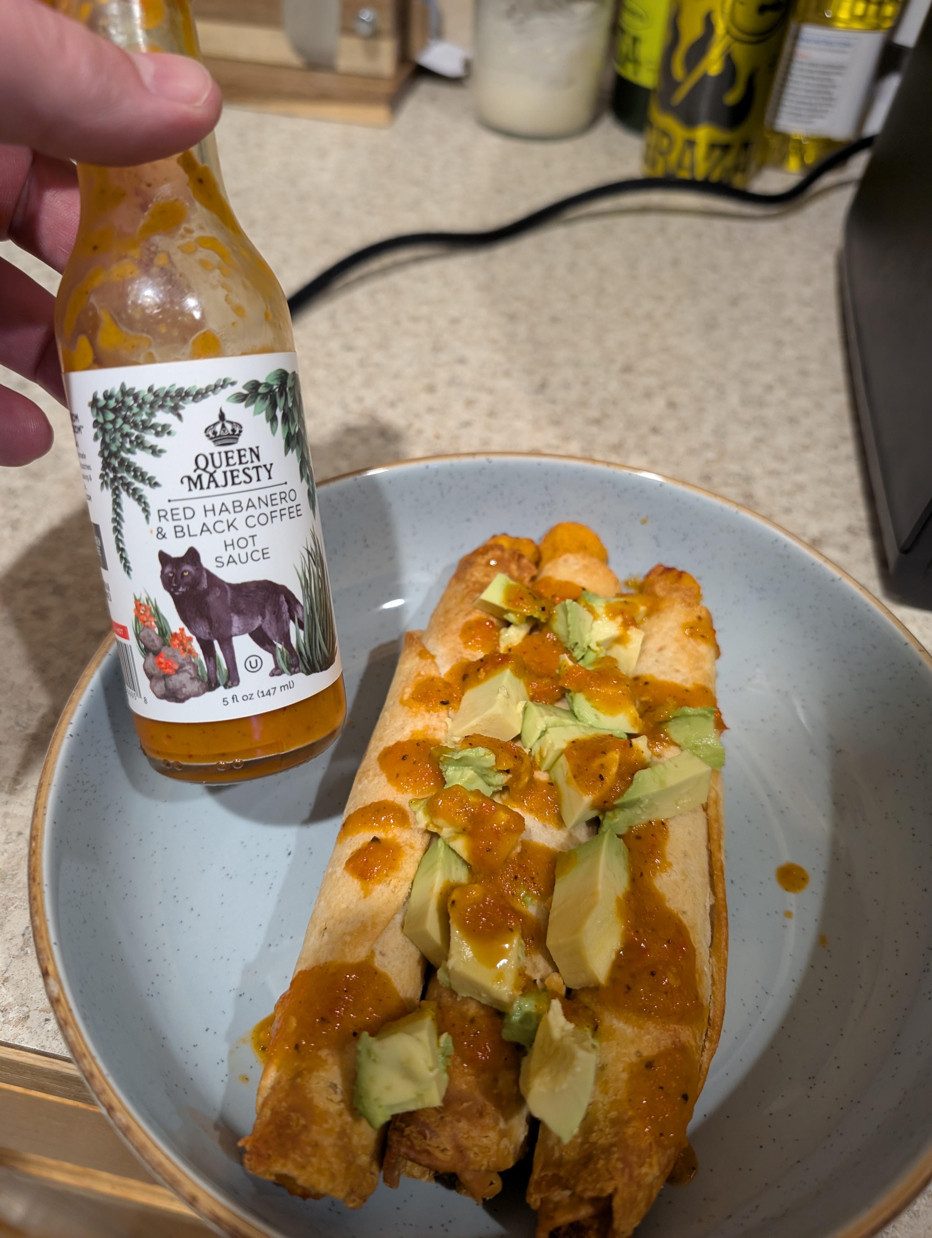 I wasn't a huge fan of this sauce the first time I tried it but it sure has grown on me. I've gone through 3/4 of the bottle in the last couple of days. So good.Chicken flautas (thanks Costco) with avocado and the sauce.by manbearpig541 hot sauceSauce 2 Comments Fuzzy_Welcome8348 2 hours ago Looks pretty good! I’d totally try it Darossman907 2 hours ago Great combo! I’ve done this many times. I also like those flautas with hot ones barbacoaWrite A CommentYou must be logged in to post a comment.