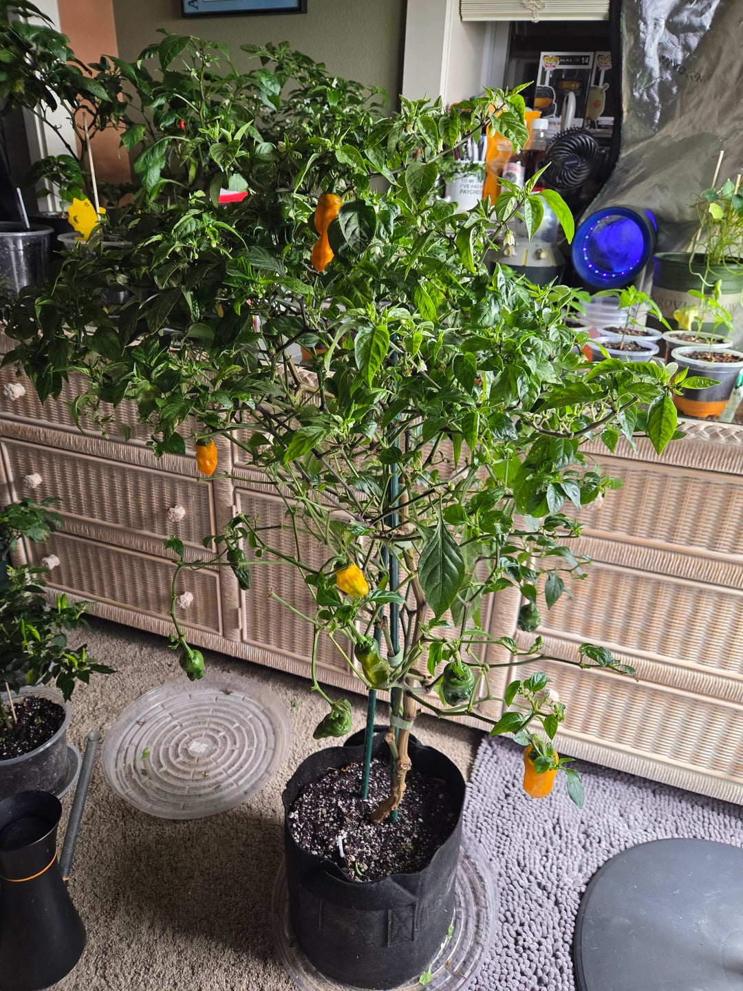 The jalapenos are tiny because I basically have all my peppers in 1 gallon pots, besides my orange pepperoncini plants, which are in 3 gallon grow bags.