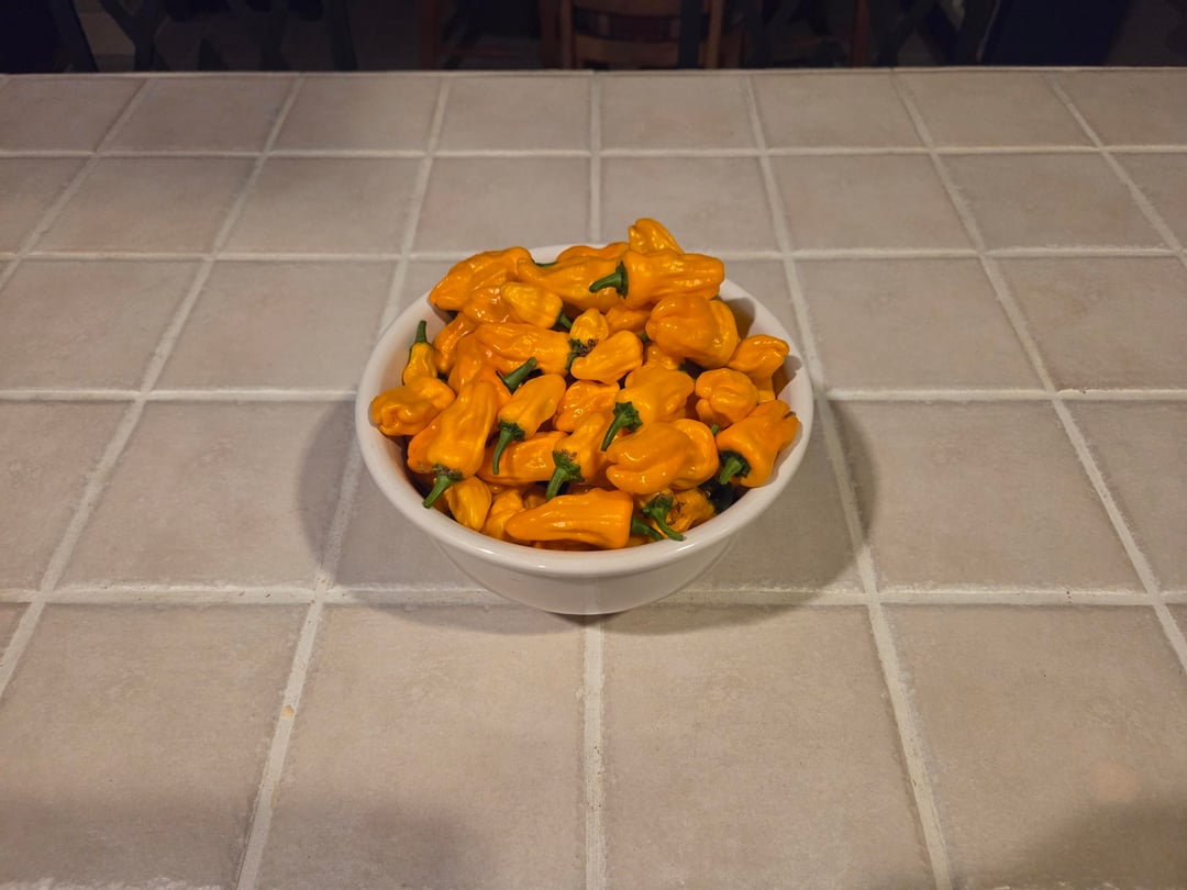 My best orange pepperoncini plant is going through some struggles, so I decided to harvest all my plants, here's what I got.