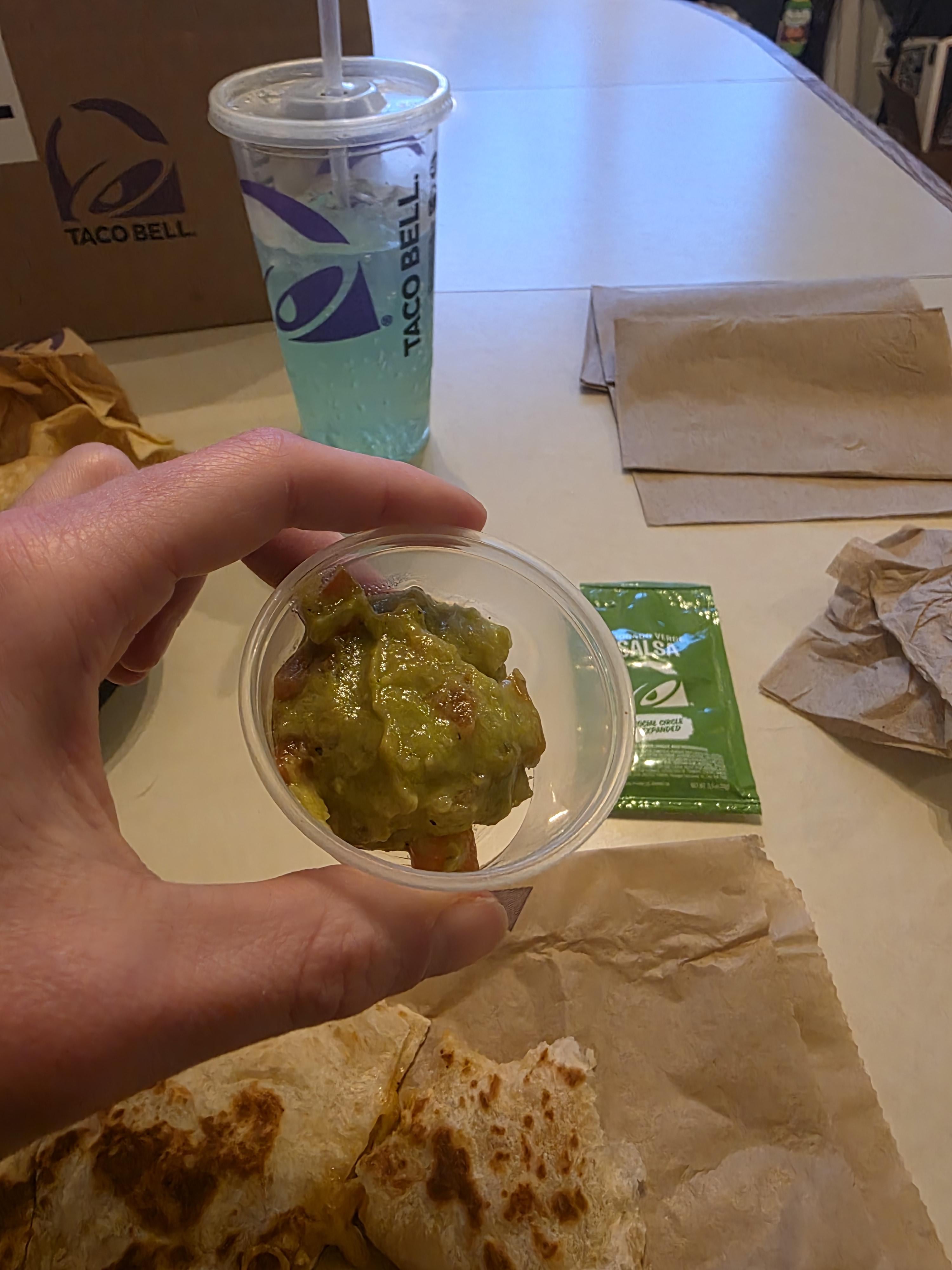 $1.45 for literally two bites worth of guac 😭 The rest of my order was great though by East_Name5200 taco bell 1 Comment Fuzzy_Welcome8348 1 hour ago Nahhh fam that’s wild💀💀Write A CommentYou must be logged in to post a comment.