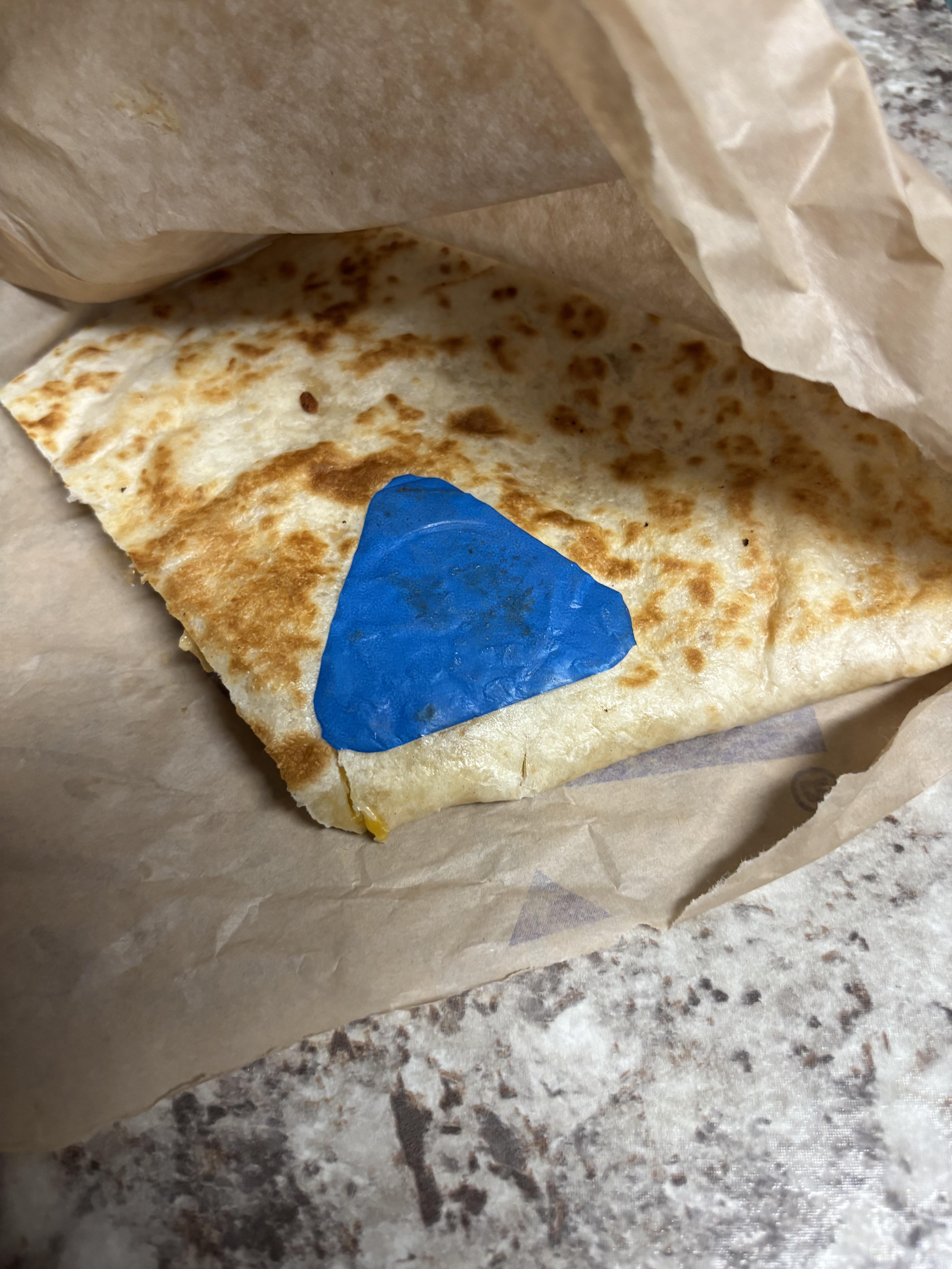 What the heck is this blue thing on my quesadilla?by freetraveler11 taco bell 3 Comments Fuzzy_Welcome8348 3 hours ago Tell and ask the manager Mediocre_Try_1954 3 hours ago You won the golden ticket Charlie! arminus83 3 hours ago The top seal thing on the sour cream tubes if memory serves me correctly from seeing a post like this before, you can even still sorta see the outline of the top of the tubeWrite A CommentYou must be logged in to post a comment.