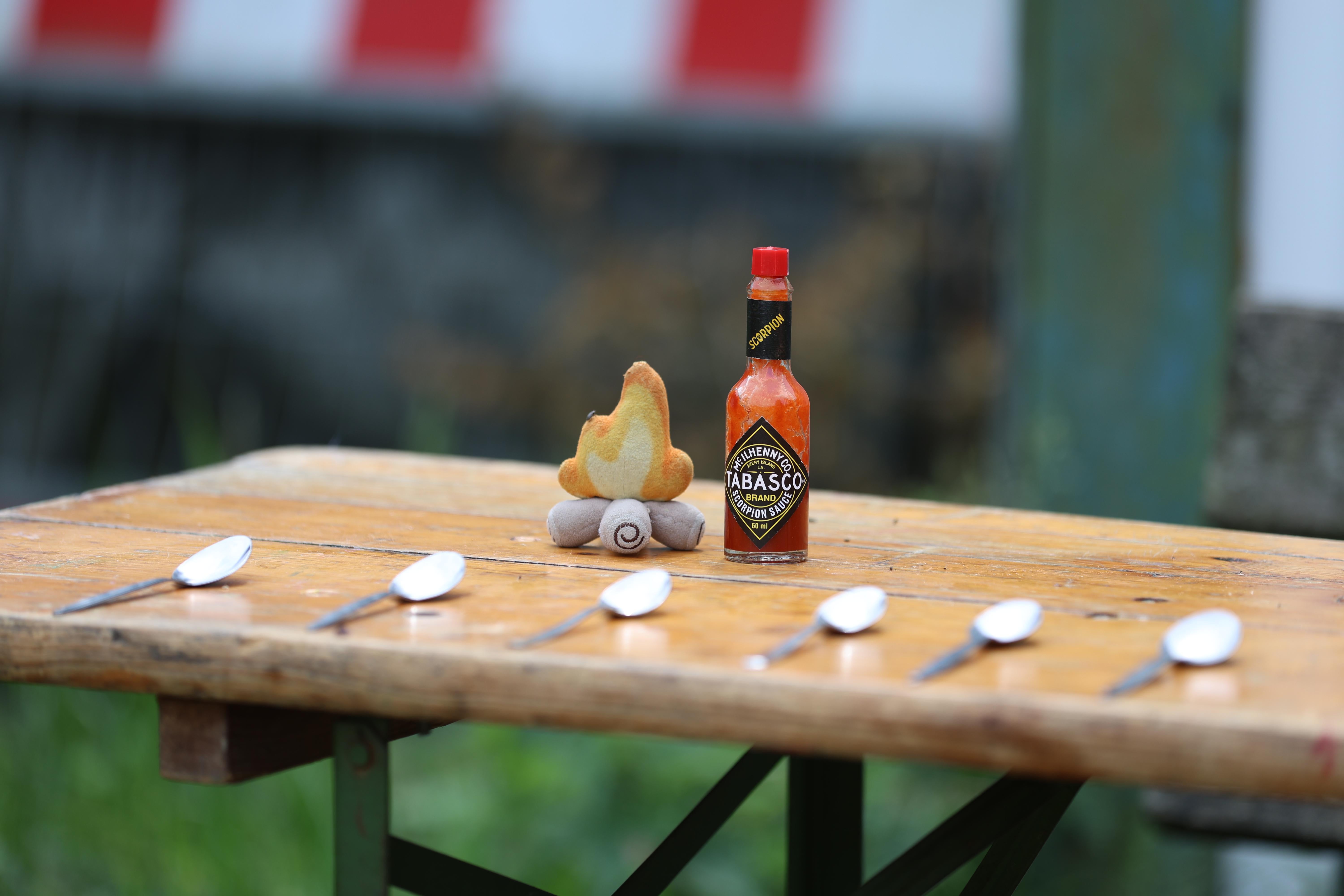 I set up this station as a voluntary-dare-kind of activity so everybody from cubs to leaders could try to beat the heat. I put only one drop of Tabasco Scorpion on each of the spoons but before I knew it, most were running to the camps kitchen to steal milk out of the fridge. At first nobody wanted to try it, but as soon as one scout from their peer group did, the rest, mostly the younger ones, couldn't let it sit on them that they seemingly weren't as tough, so it was really kids hyping each other up for a world of pain, which was hilarious to see.