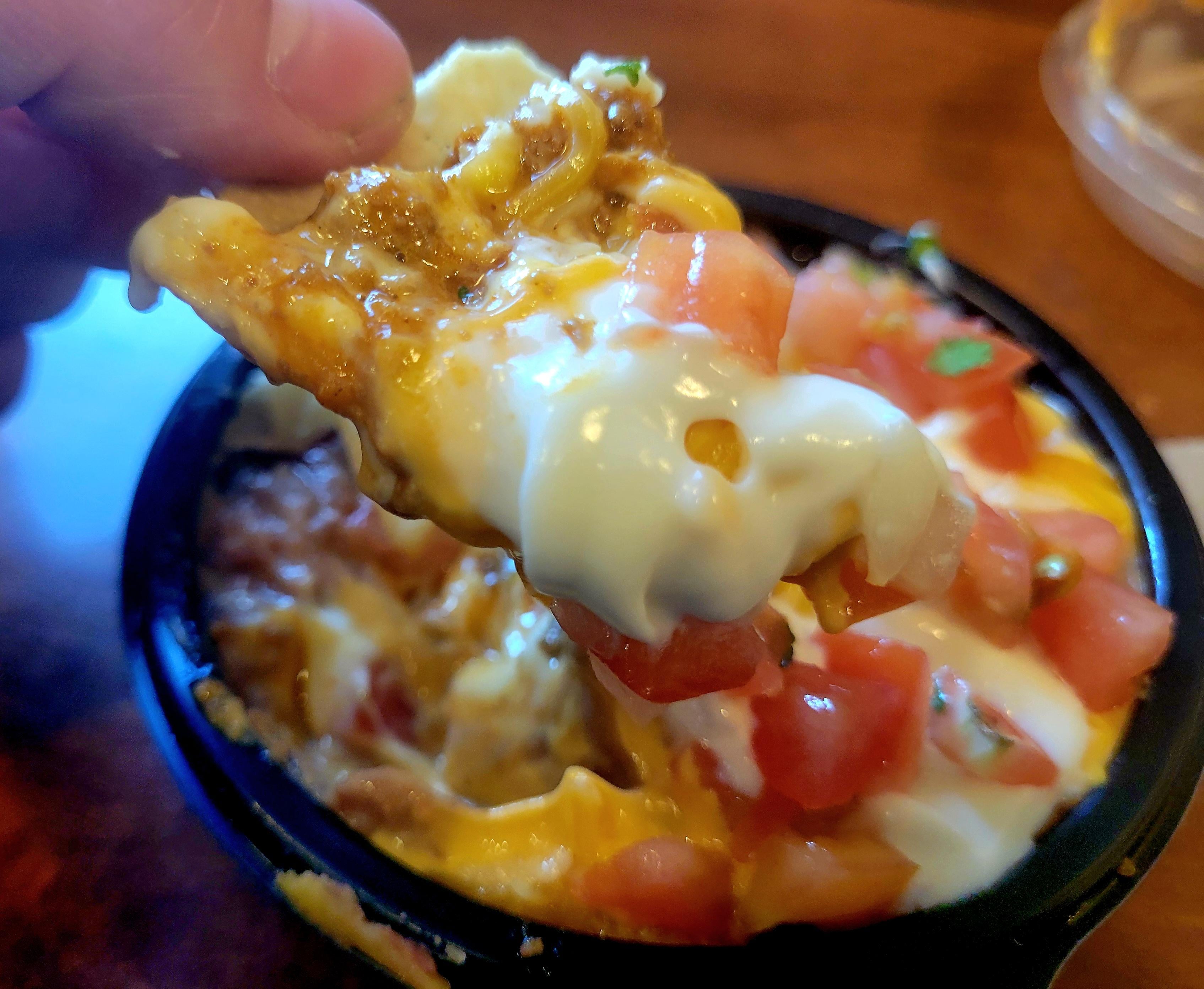 Even the regular cheese dip comes with barley any chips.