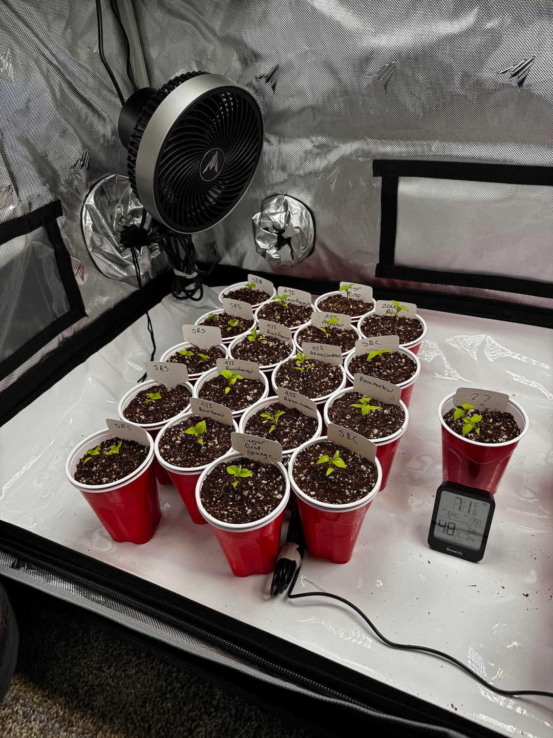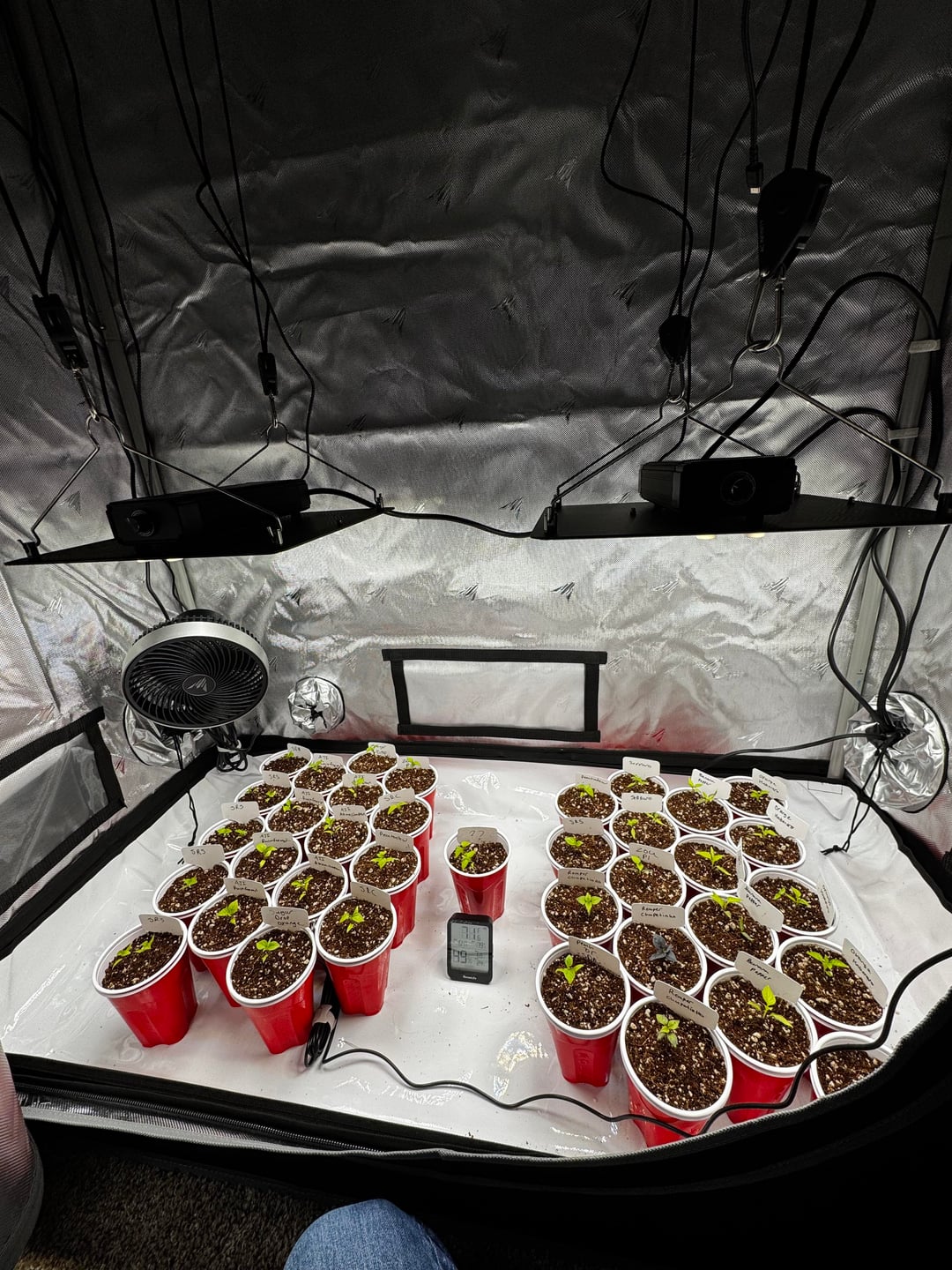 Just up-potted to red cups. Coco was moistened to expand it, but the seedlings hadn’t been watered in a few days.