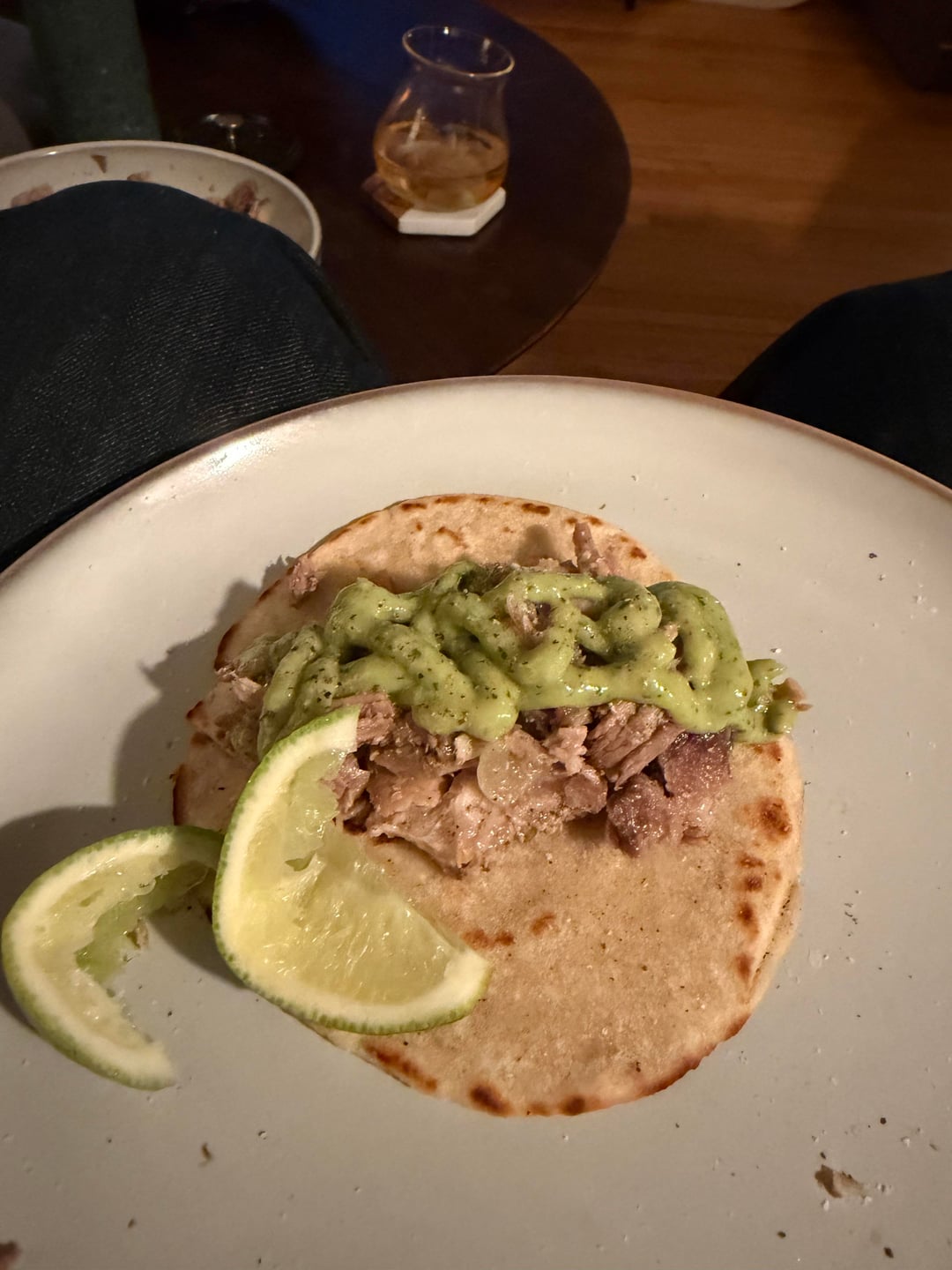 Salsa verde – used a food processor to blend cilantro, red onion, garlic, salt/pepper, lime, and jalapeño before adding semi mashed avocado, add water until preferred viscosity is met.