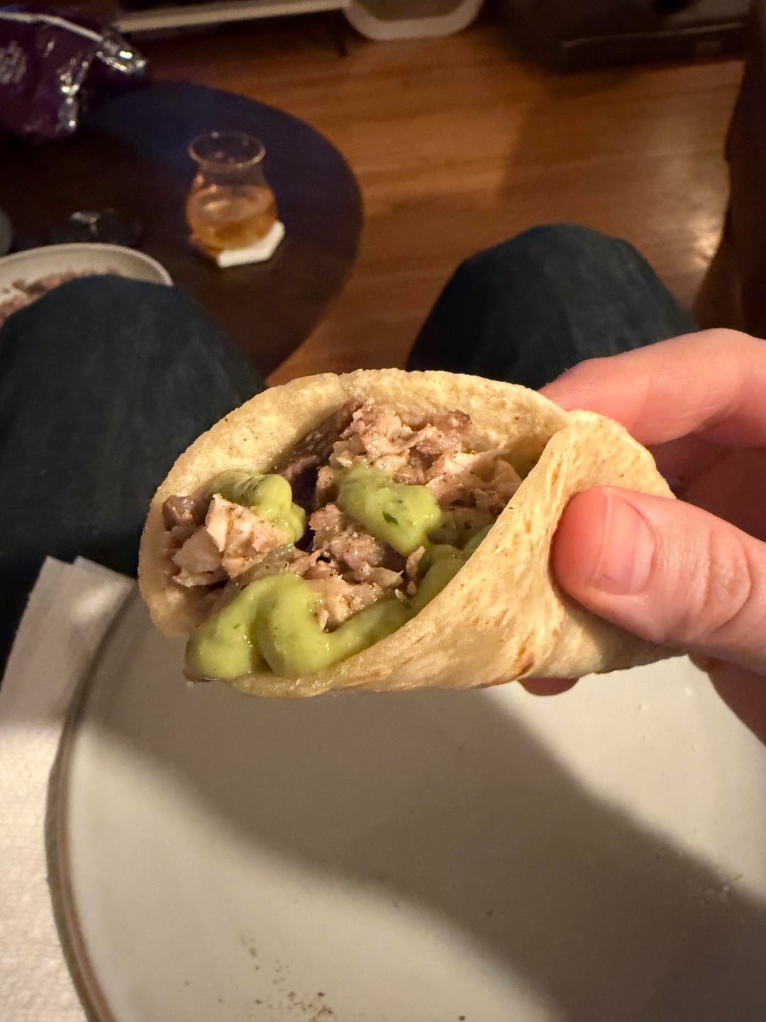 Homemade 60/40 masa/flour tortillas with bacon fat