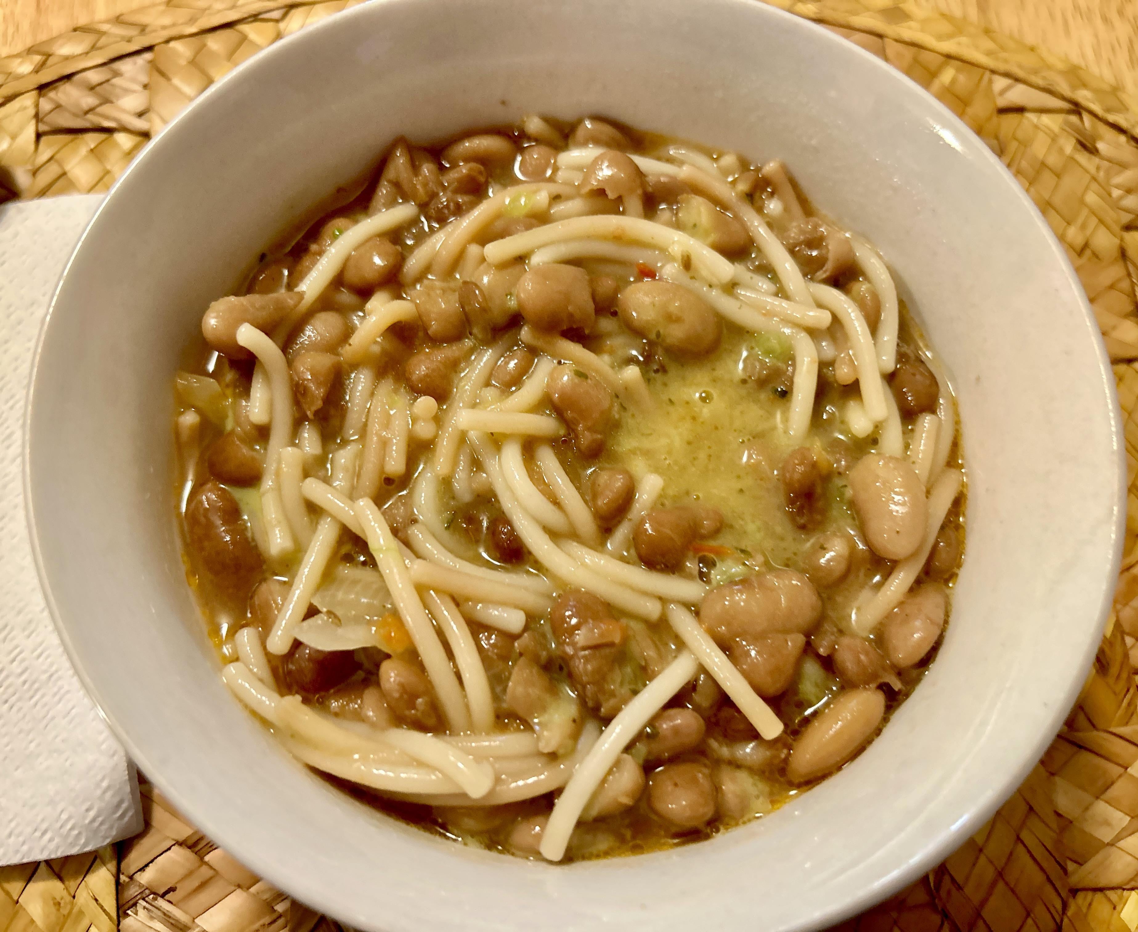 I drove down four hours to clean up my 80 year-old mom’s yard for Spring. She tells me, “Mijo, you’re not doing all that work on an empty stomach. Sit down.” Then she hits me with beans and fideo. Comfort in a bowl. The yard got done with a smile.