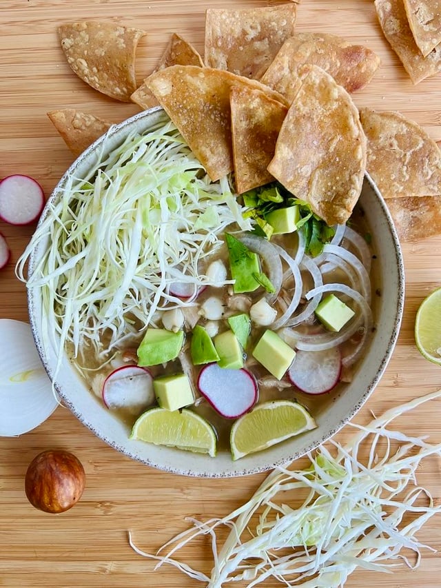 I like to cook my corn/posole until it pops giving the dish more corn flavor.